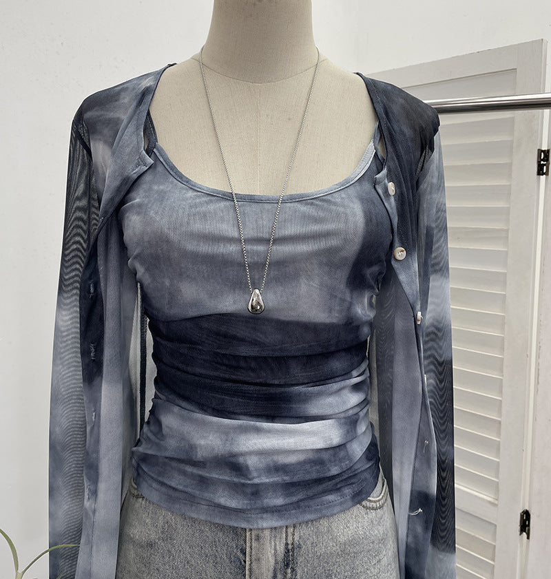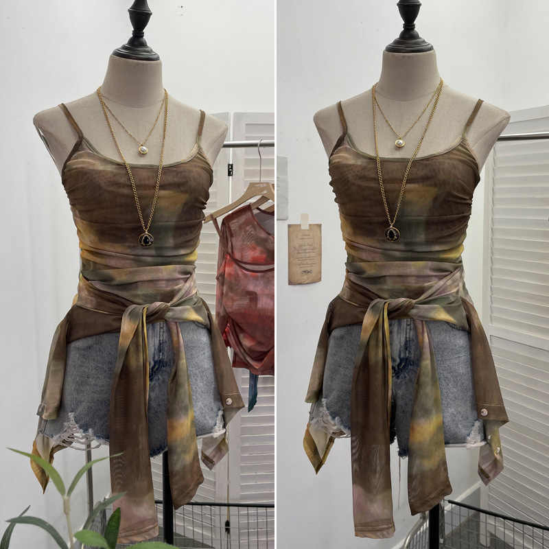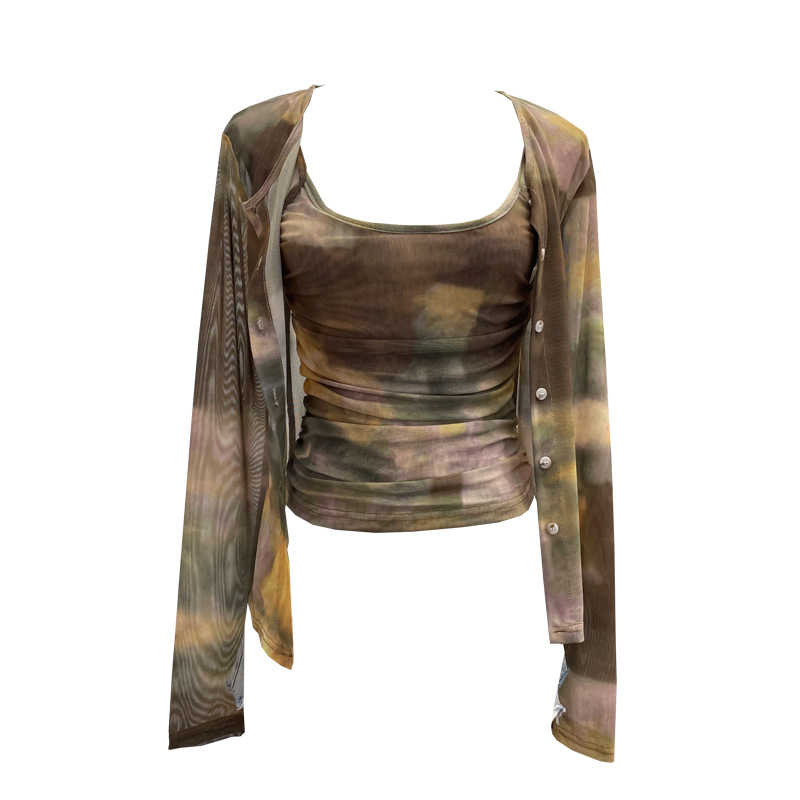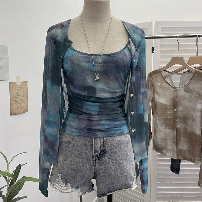 Millennial Babes Tie-Dye Net Yarn Sunscreen Cardigan Two Sets Of Sling Vest + Long-Sleeved Shirt Top 8056 HZ1208