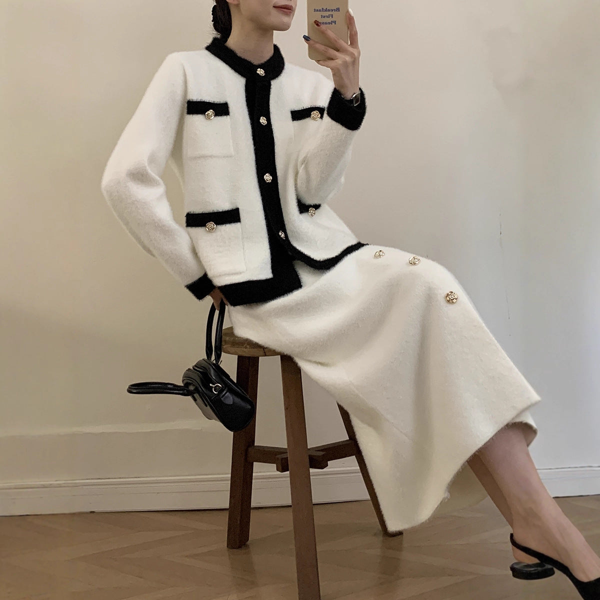 2025 Autumn And Winter Hot Sweater Suit Women Loose Long Version Imitation Cardigan + Open Fork Dress HZ1208