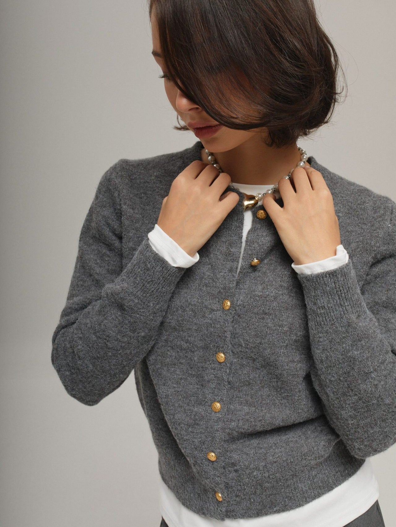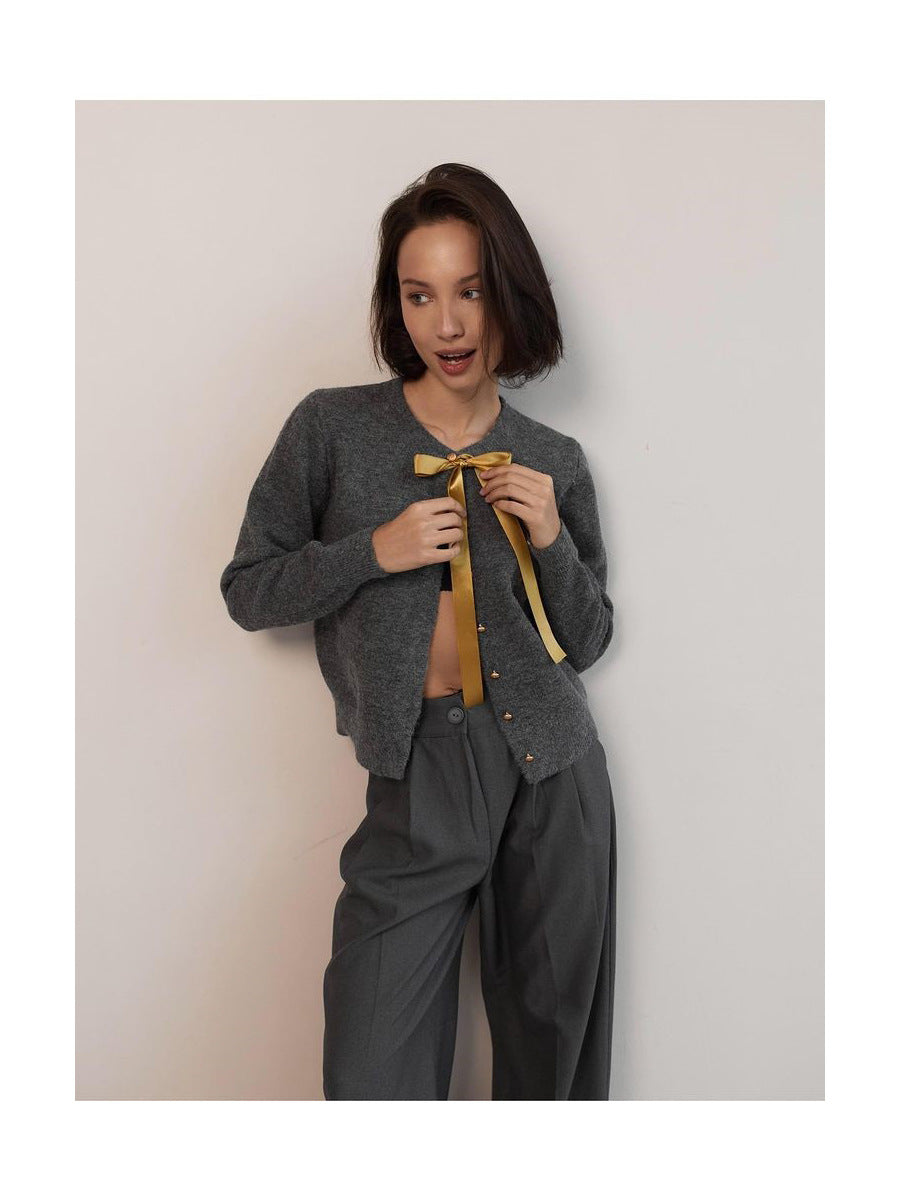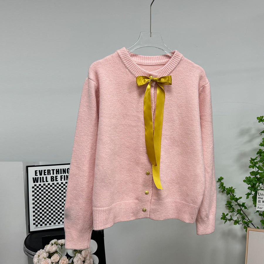 Small Gold Buckle Simple Knitted Cardigan 2025 Spring New Round-Neck Short Sweater Jacket HZ1208