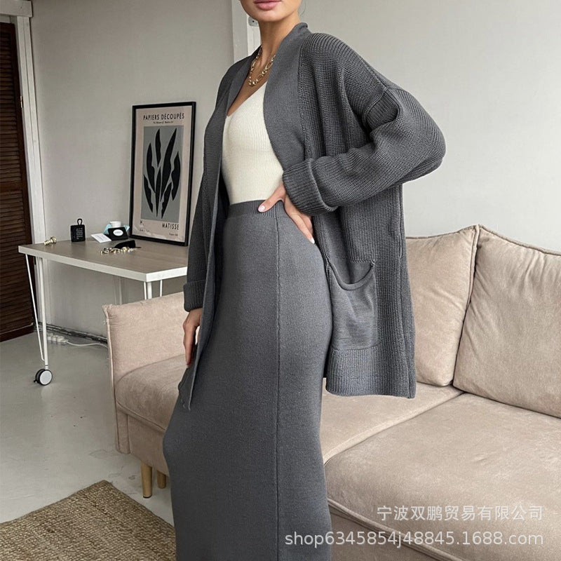 Women's Sweater Set Autumn/Winter New Sweater Cardigan Women's Loose Belt High-Waisted Skirt Fashion Knitwear HZ1208