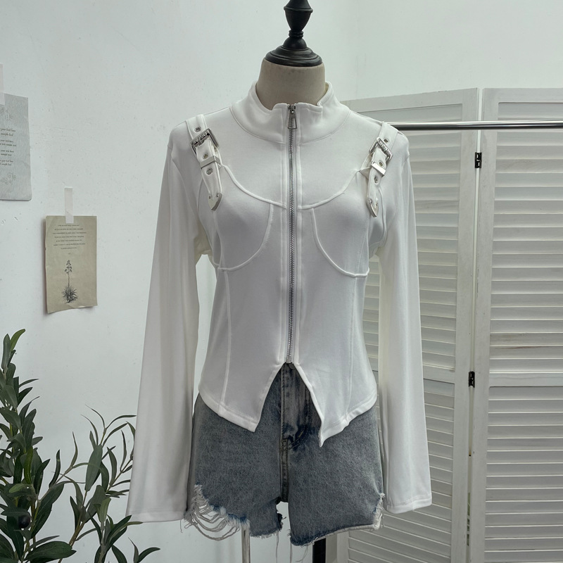 Real Shooting Irregular Zipper Collar Short Small Coat With Long Sleeves And Bottom Shirt 2680 HZ1208
