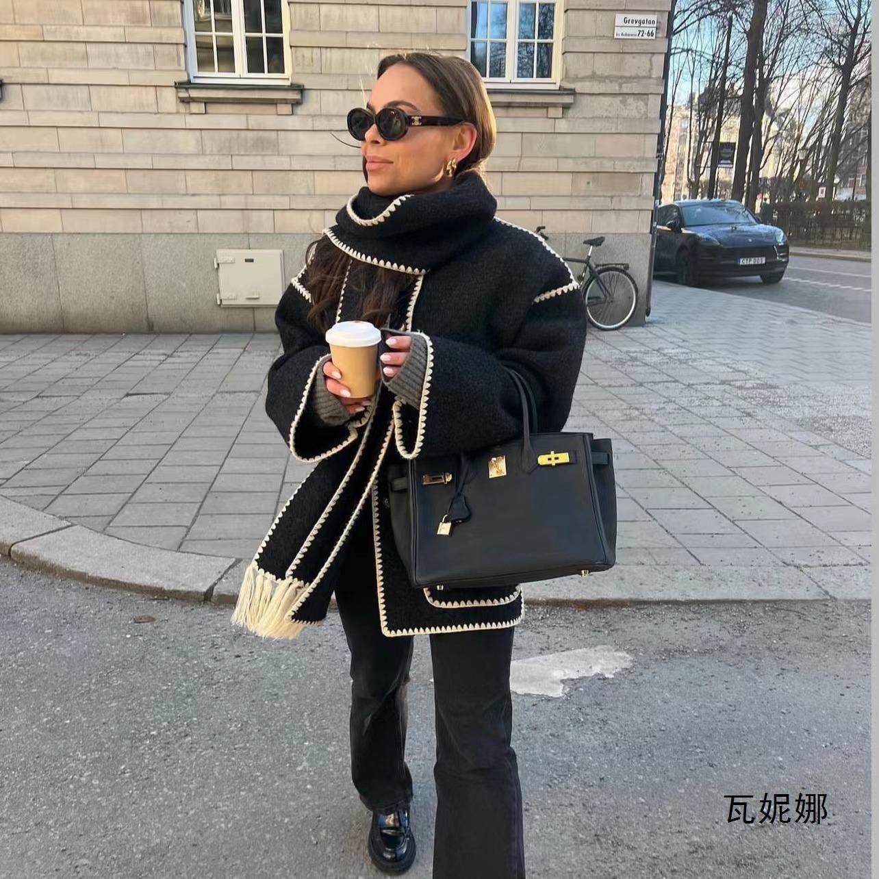 Women's Clothing 2025 Autumn And Winter New Fashion Wool Coat Thick Loose With Scarf Tid Lady HZ1208