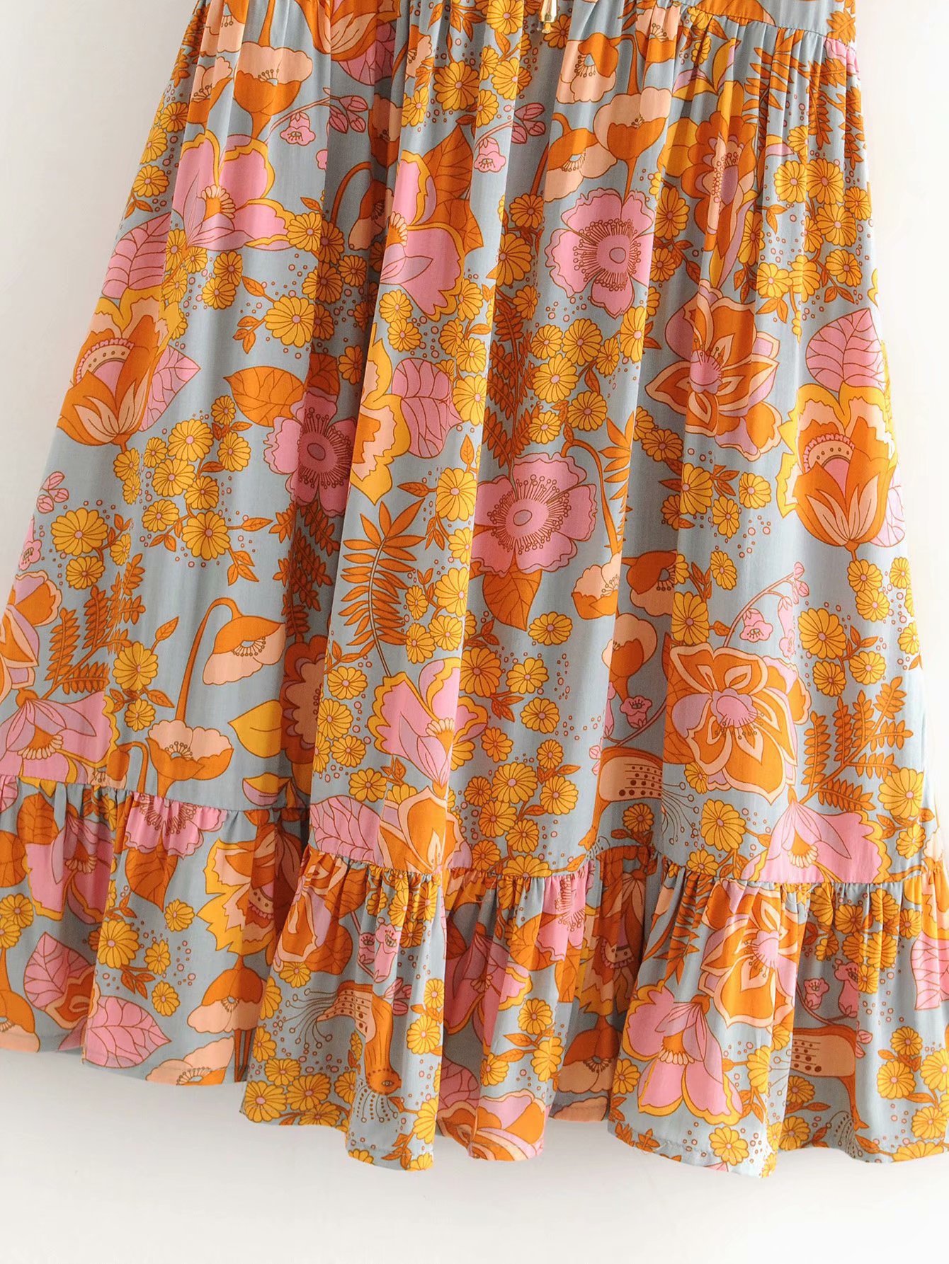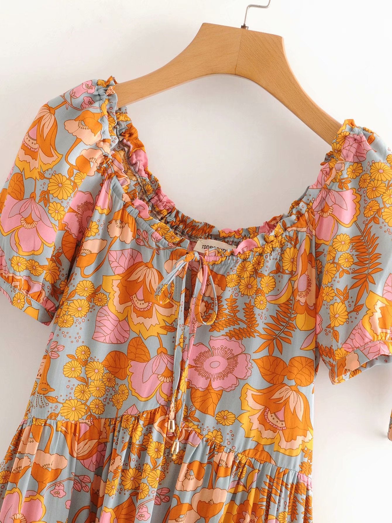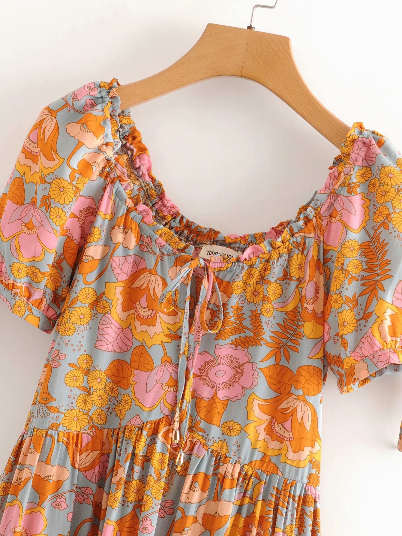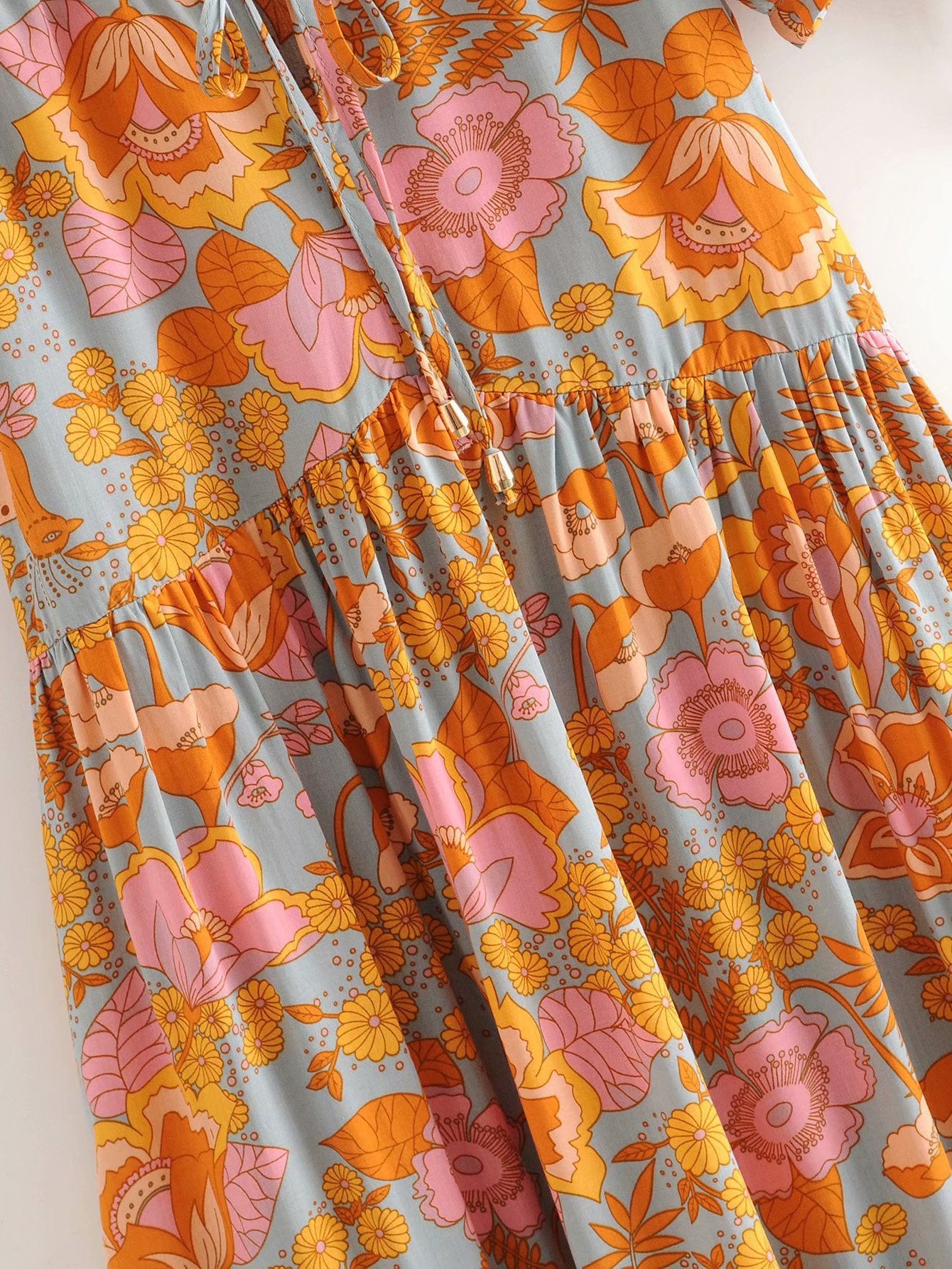 2025 Women's Gold Tea Flower Chest With Short-Sleeved Dress 8679 HZ1208