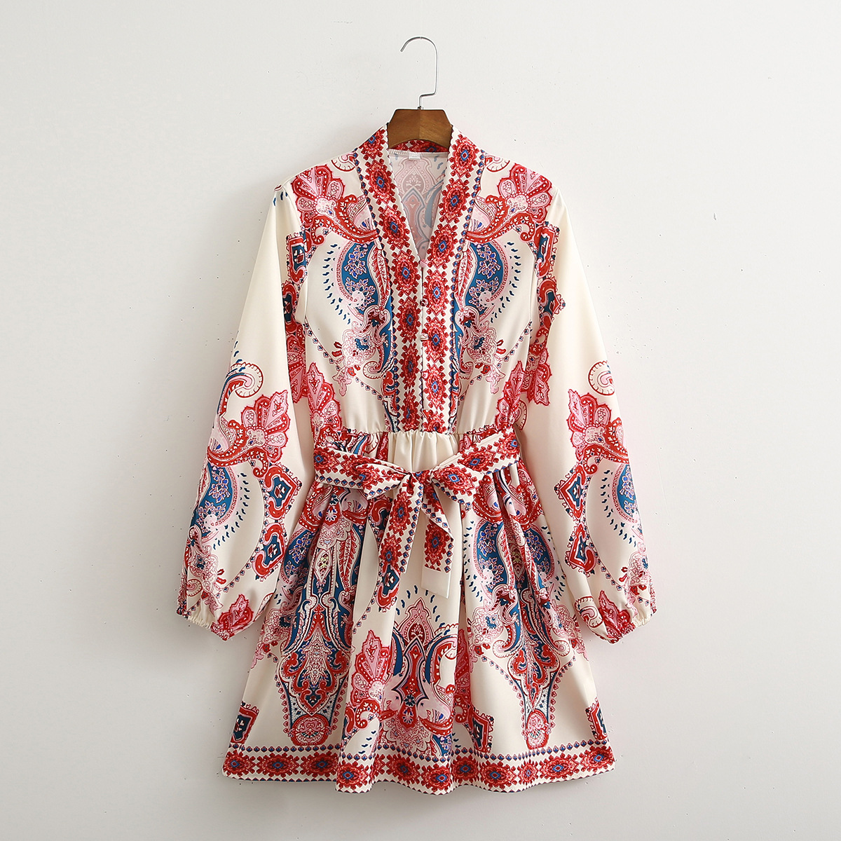2025 Women's Long-Sleeved Positioning Floral Dress 5506 HZ1208