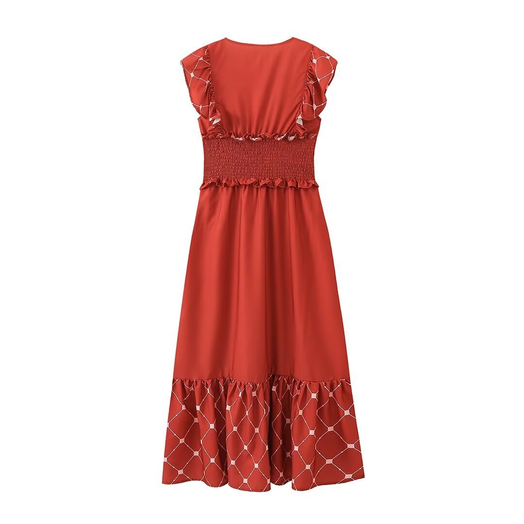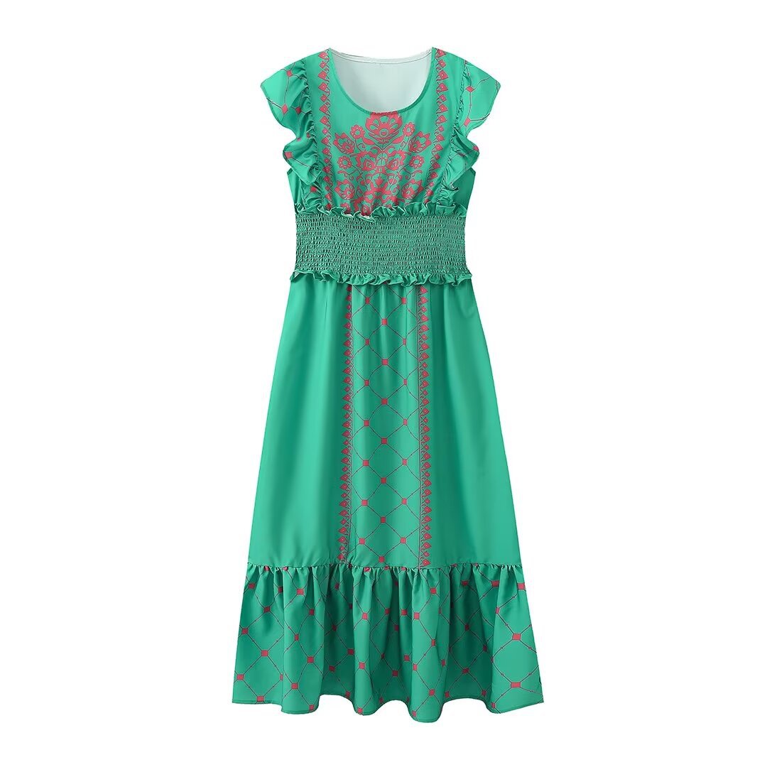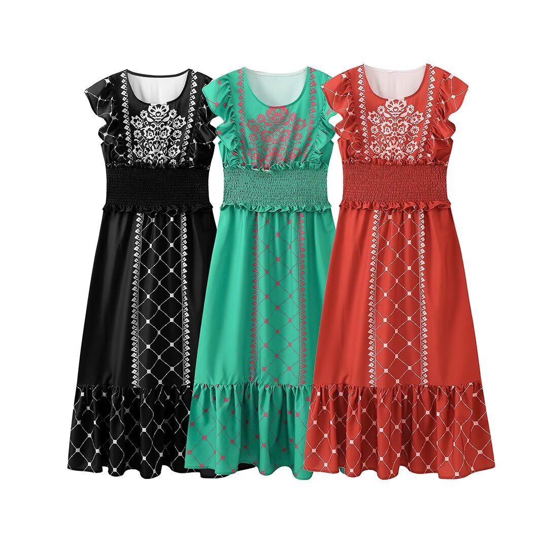 2025 Women's New Three-Color Printing To Take Waist Dress 146 HZ1208