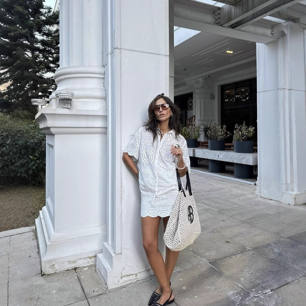 2025 Women's White Short-Sleeved Shirt + Lace Skirt Dress Dress Dress Girl HZ1208