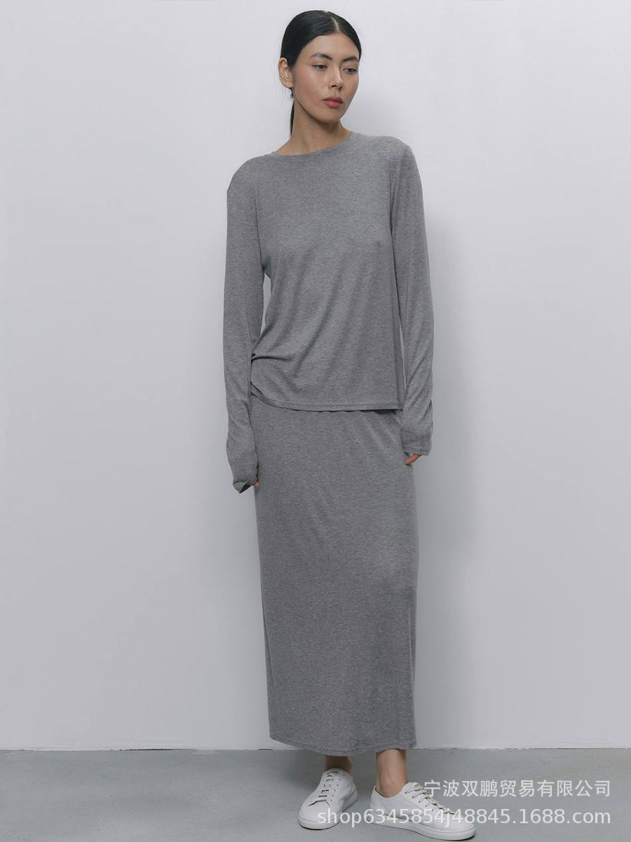 2025 Autumn And Winter Hot Sweater Suit Women Loose Long Version Imitation Cardigan + Open Fork Dress HZ1208