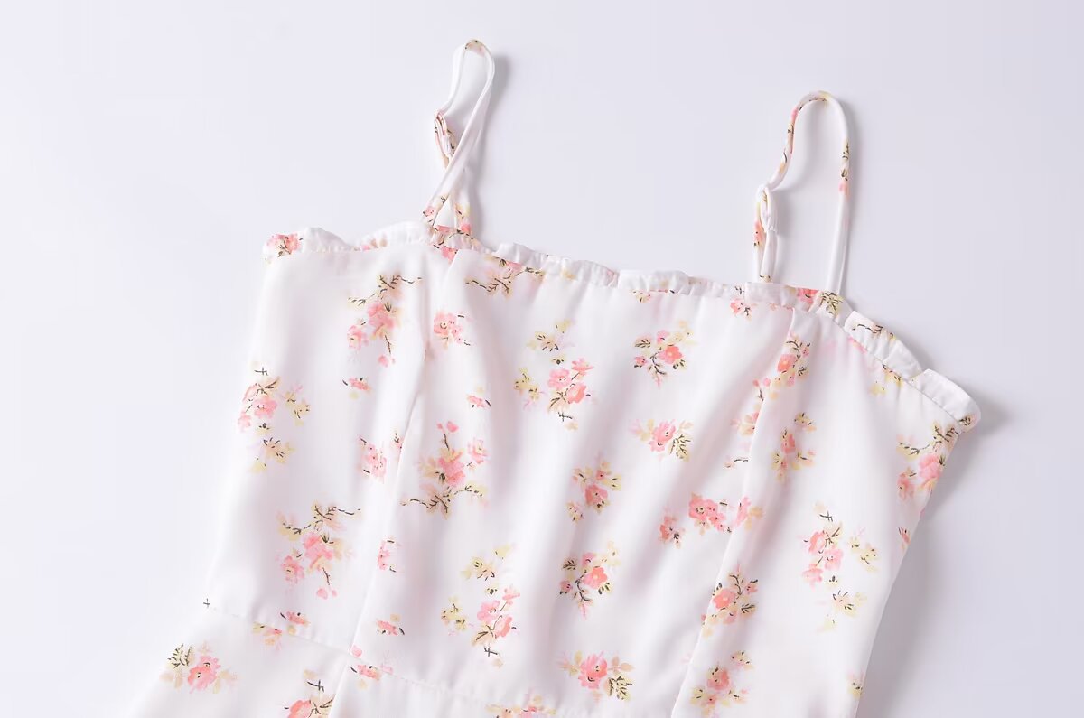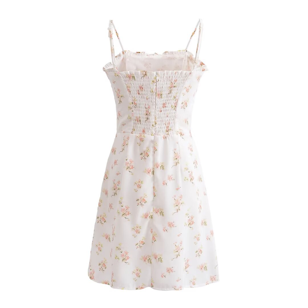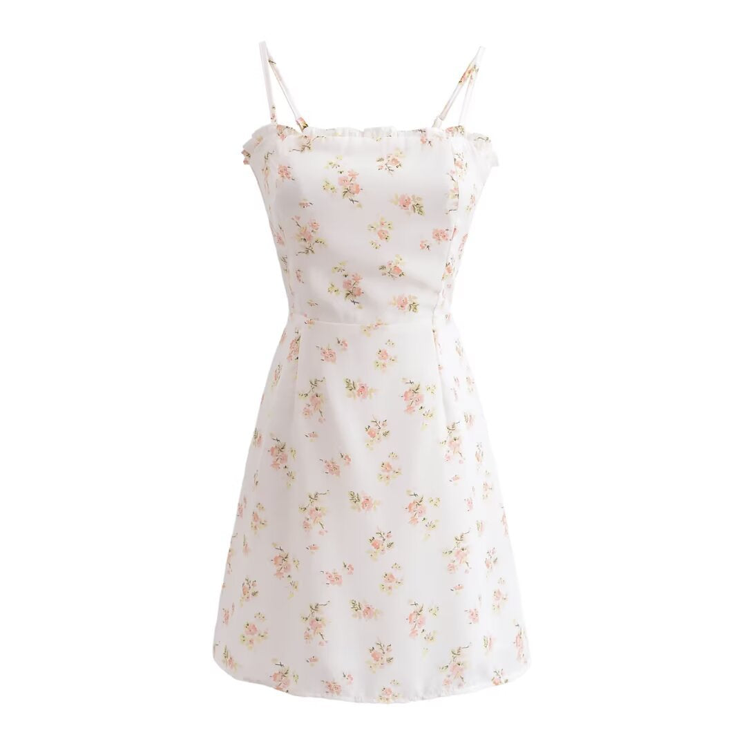 AA2025 Women's Floral Print Wood Ear Mini Sling Dress 7572 HZ1208