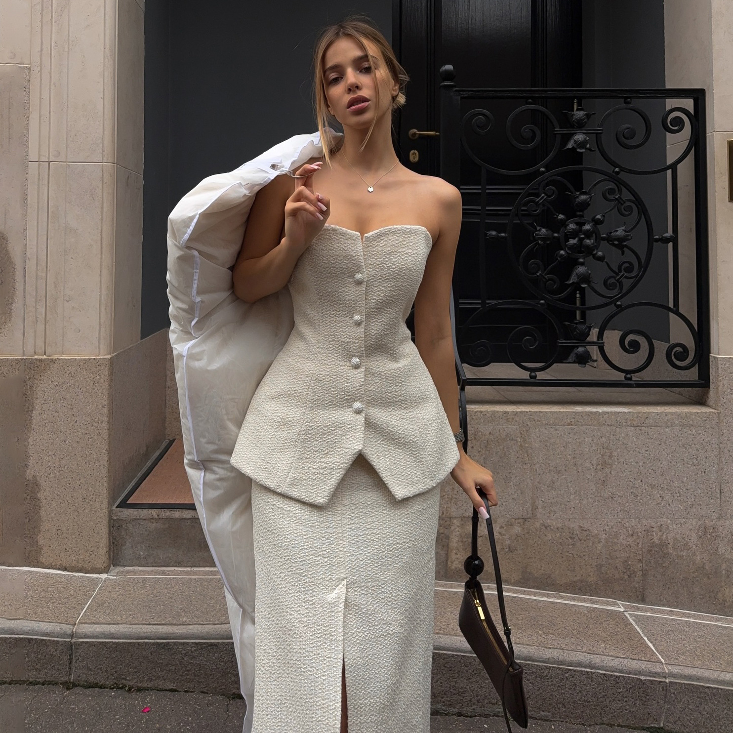 Hot Selling Small Fragrant Style Chest Suit Dress With Open Half-Body Long Dress Temperament White Elegant Famous Style HZ1208