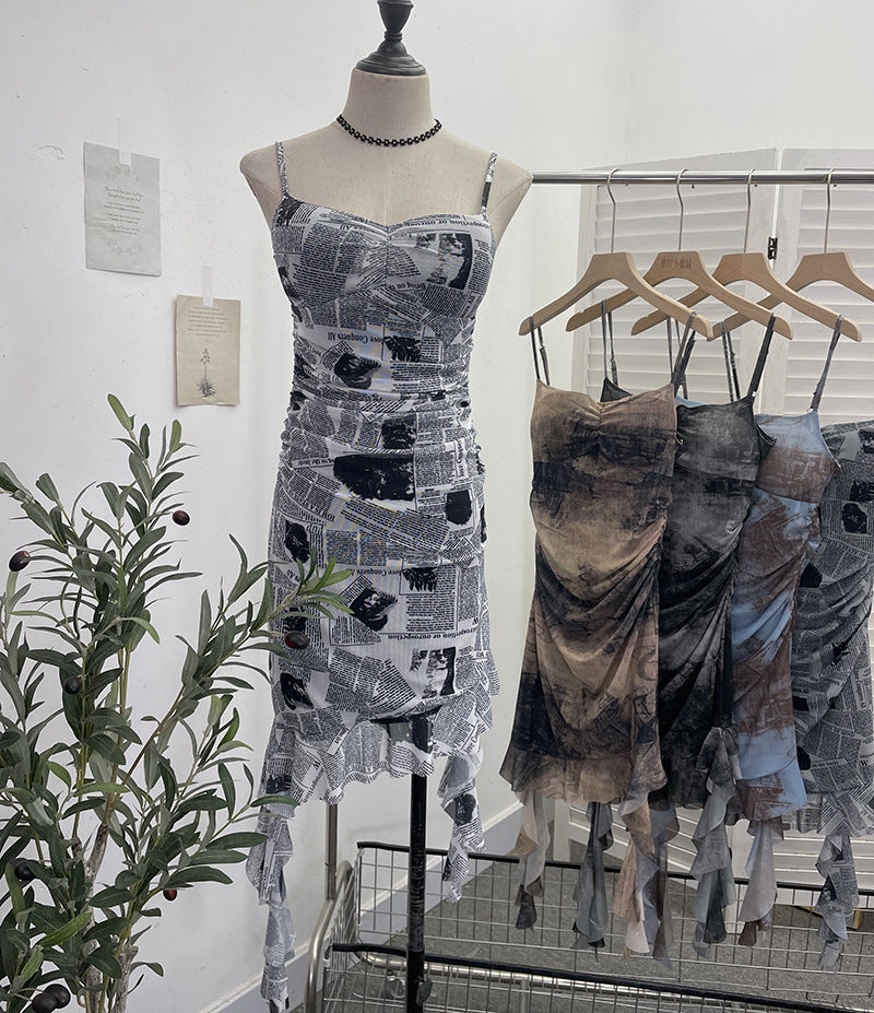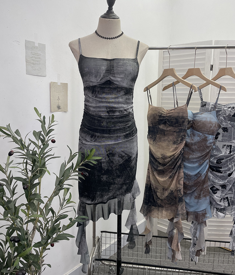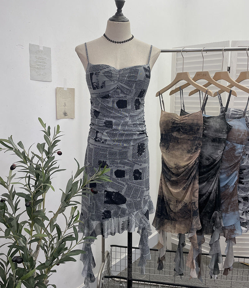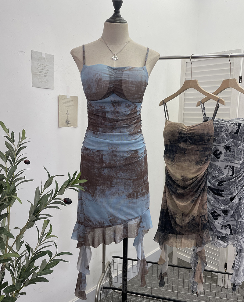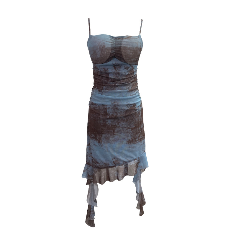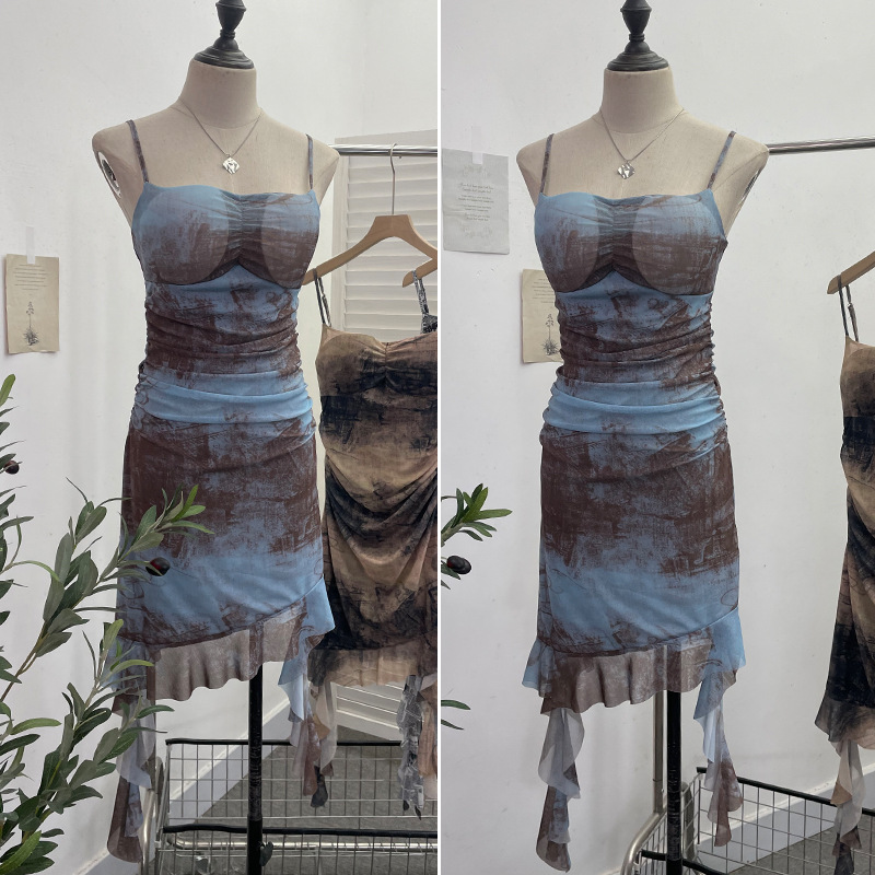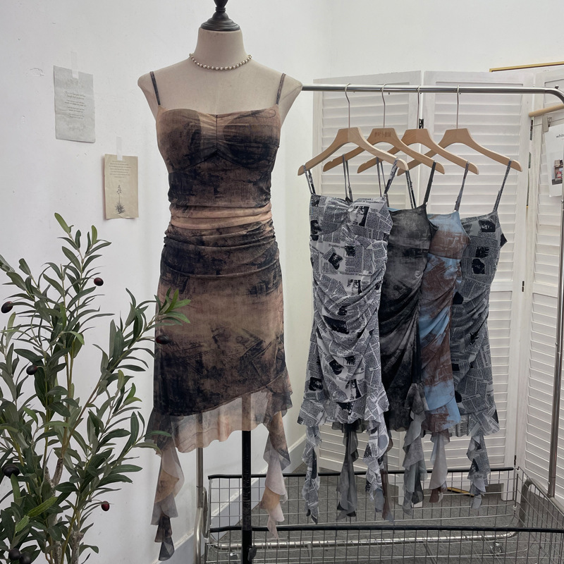 Real Shooting Sexy Sling Dress Girl Summer Babes Thin With Chest Cushion Lotion Side Ribbon Mesh Vest Dress 66661 HZ1208