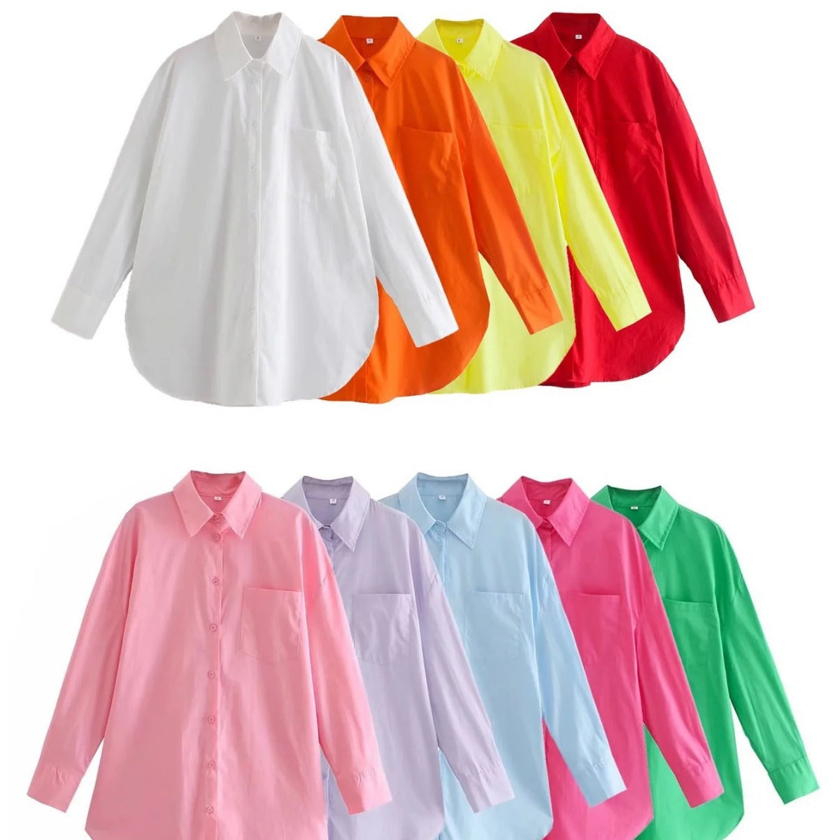Spring And Summer 2025 New Ins14 Color Pocket Dress Women's Basic Long-Sleeved Shirt HZ1208