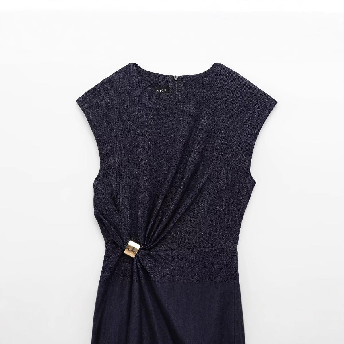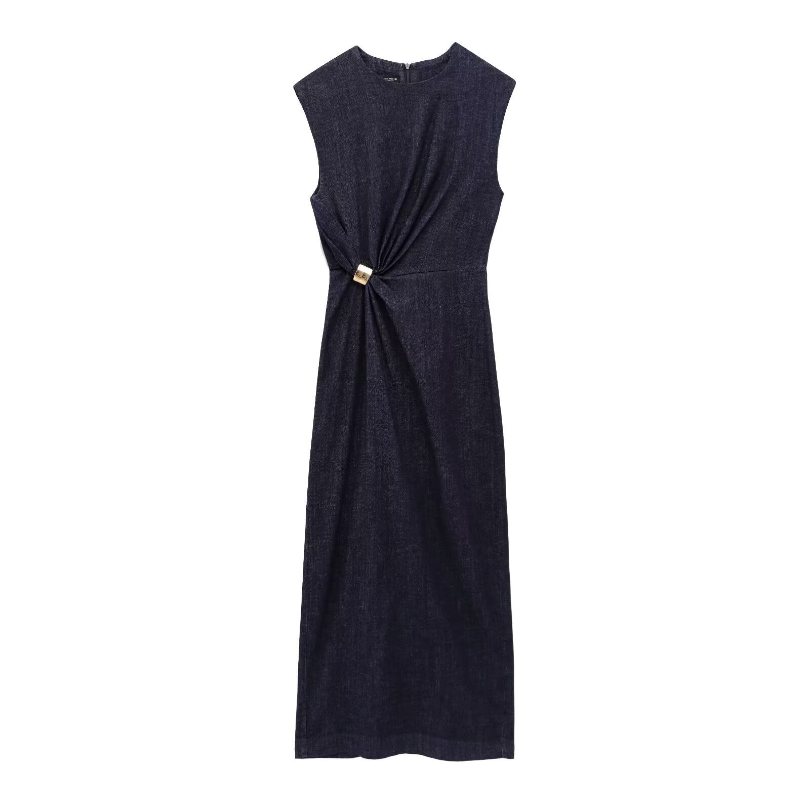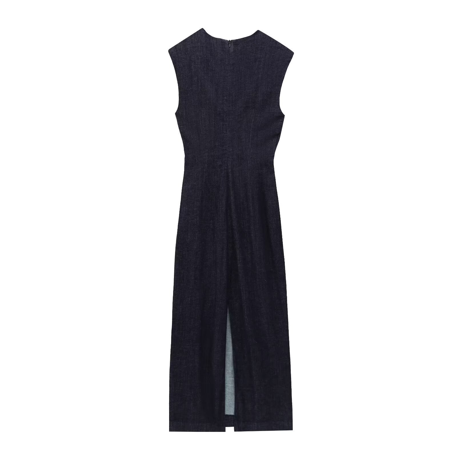 Spring New Gold Styling Sleeveless Denim Fan Dress 2025576 HZ1208