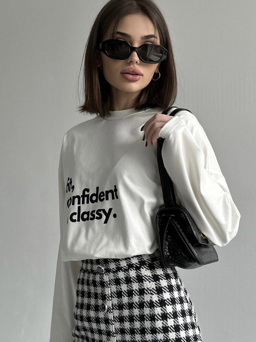 2025 Hot Sale Retro Print T-Shirt Women Cotton Long-Sleeved Letter Pattern Loose Tops HZ1208