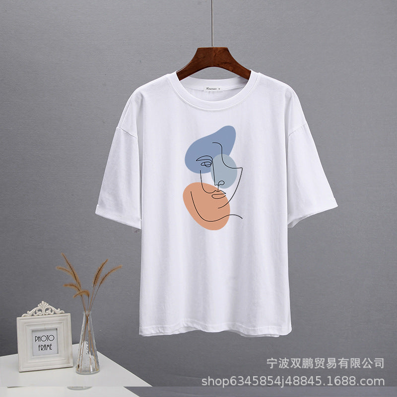 2025 Summer Abstract Aesthetic Print T-Shirt Women's Cotton Soft Loose Basic Top Ins T-Shirt HZ1208
