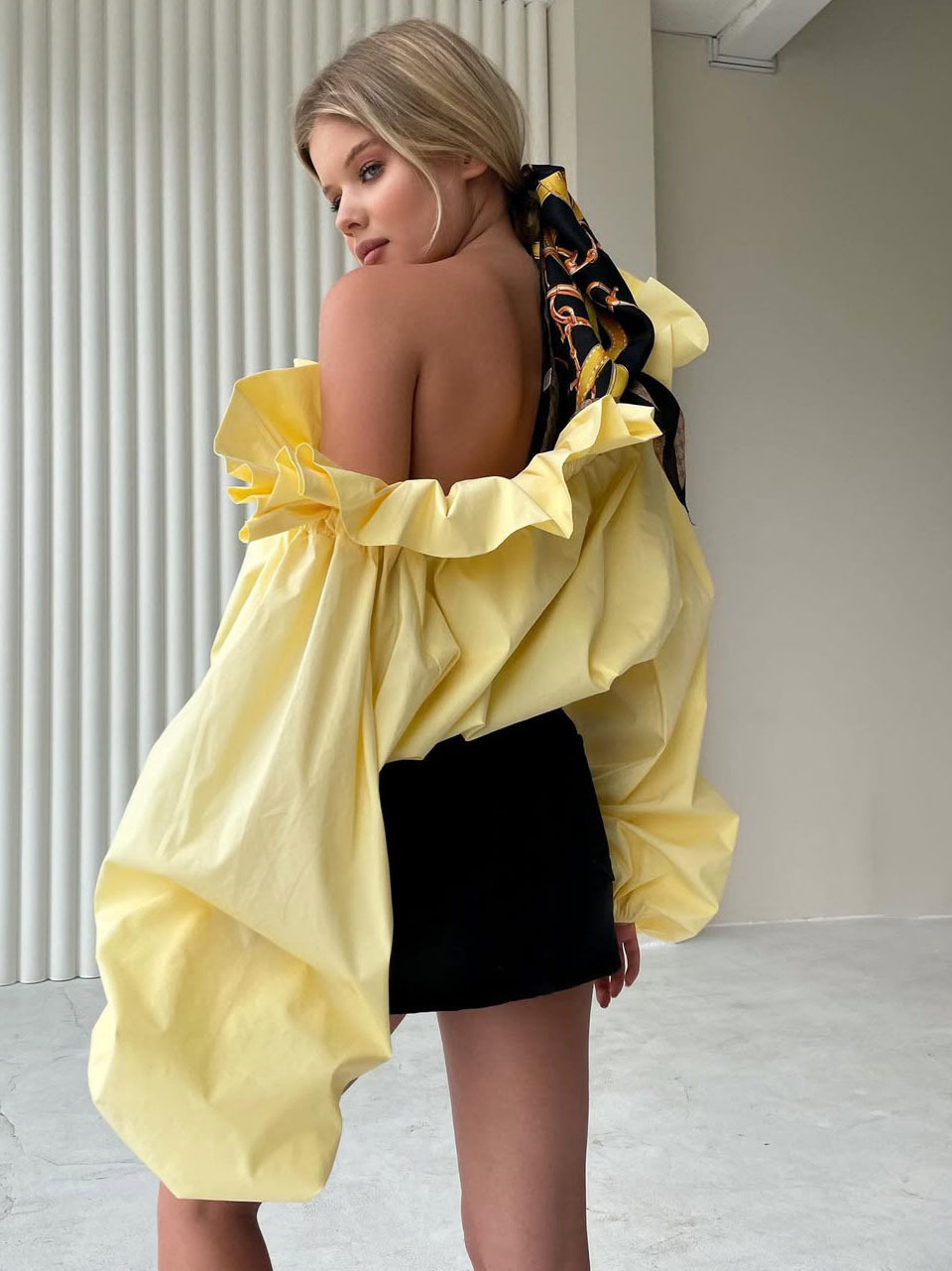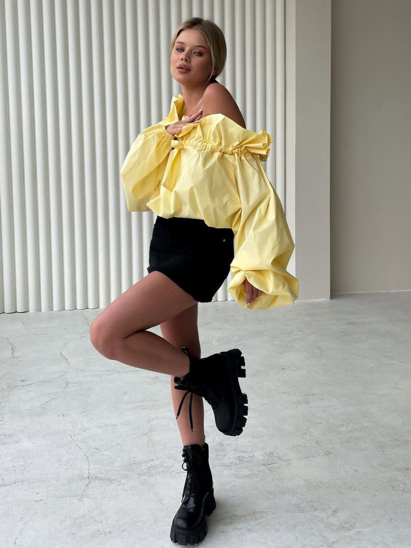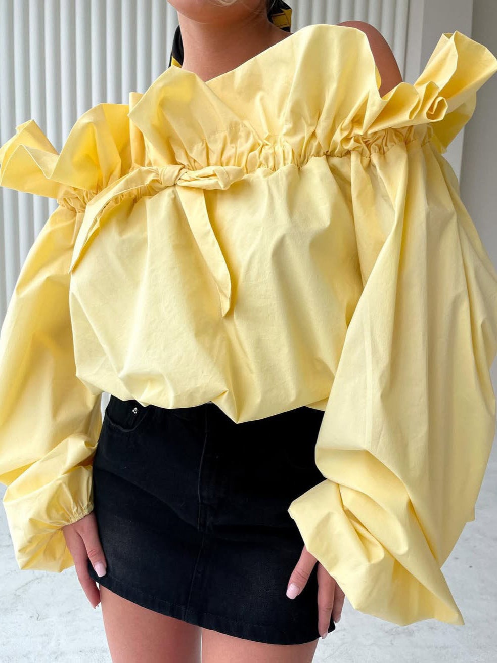 The New Lotus Leaf Side Shoulder-Sling Rope Shirt Women Feel Chic Sweet Pure Desire Loose Comfortable Top HZ1208