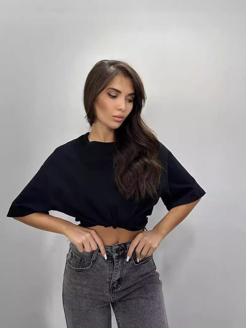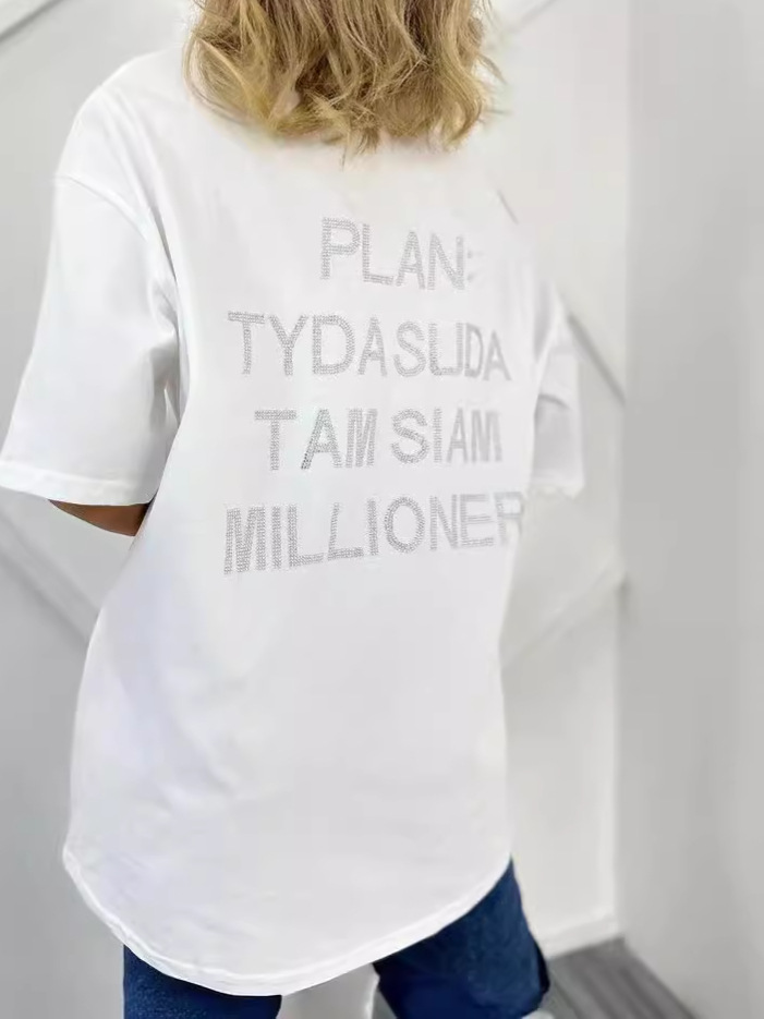 2025 Spring And Summer New Hot Diamond Letter T-Shirt Women Loose Round Neck Leisure Style Short-Sleeved Leisure HZ1208