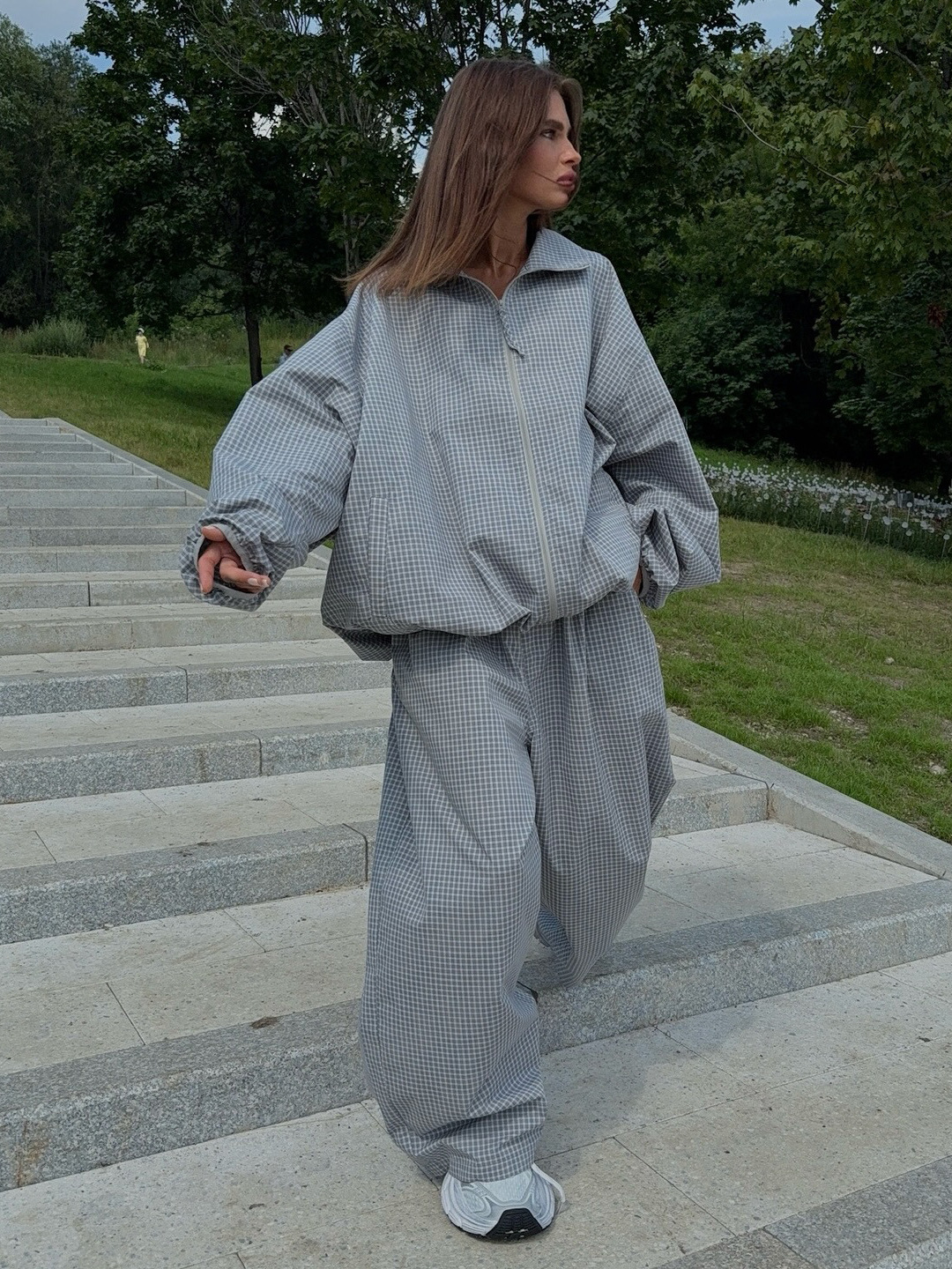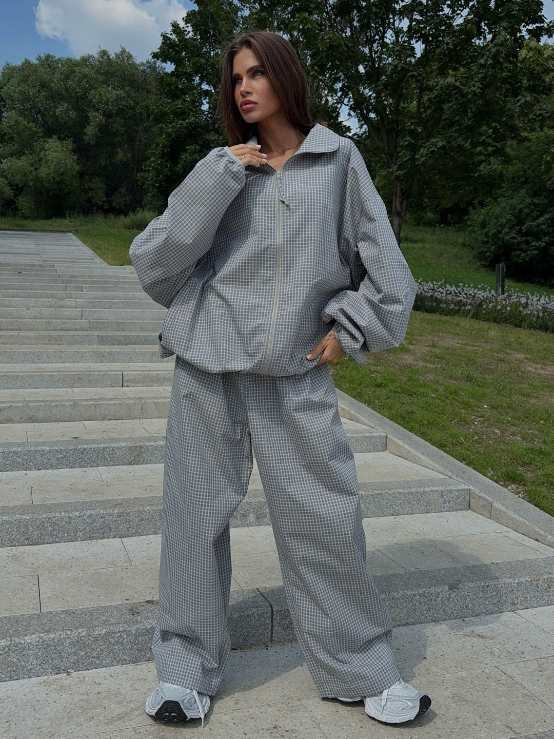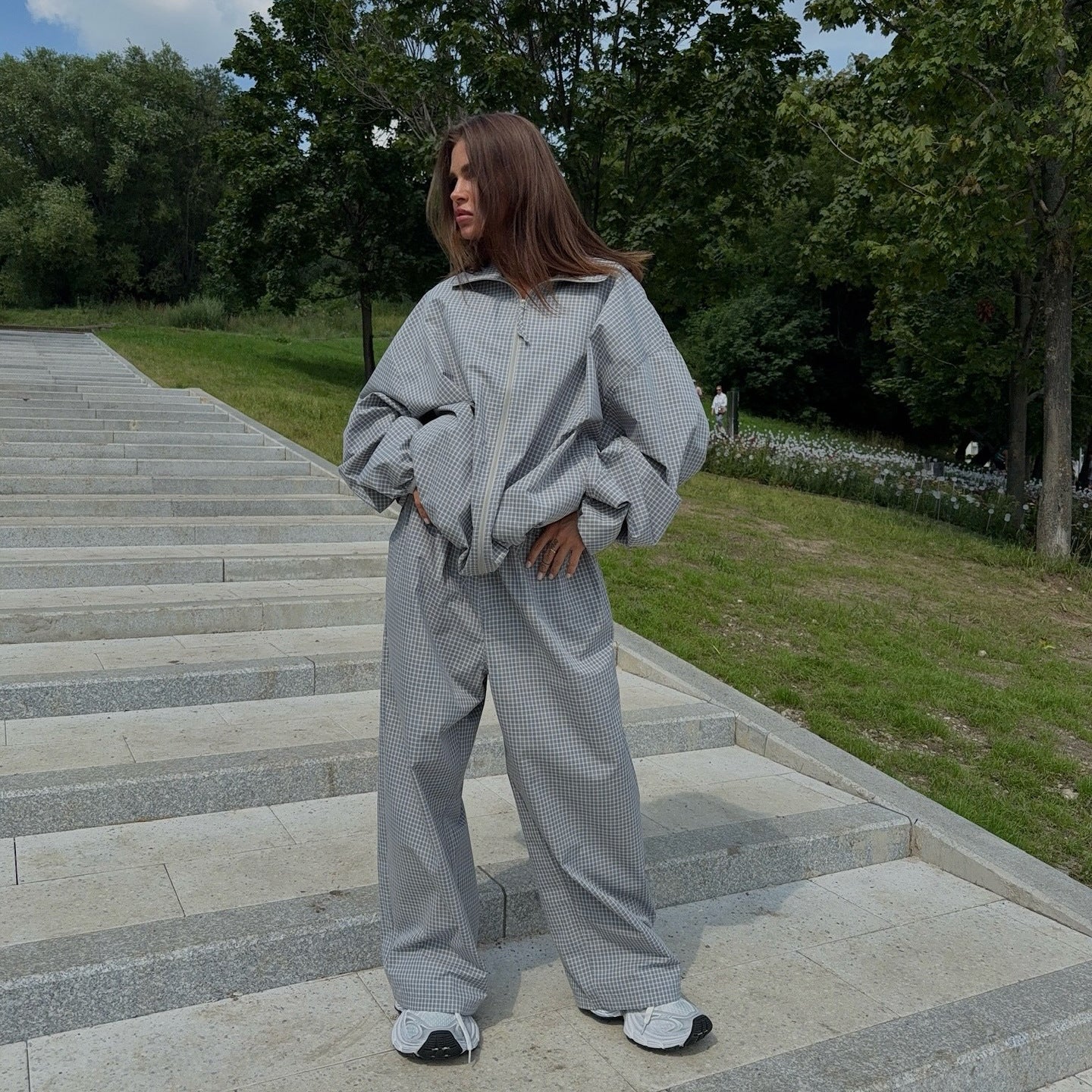 Fashion Style Jersey Top + Straight Trousers Set Women Loose Comfortable Commuting Daily Two Sets HZ1208