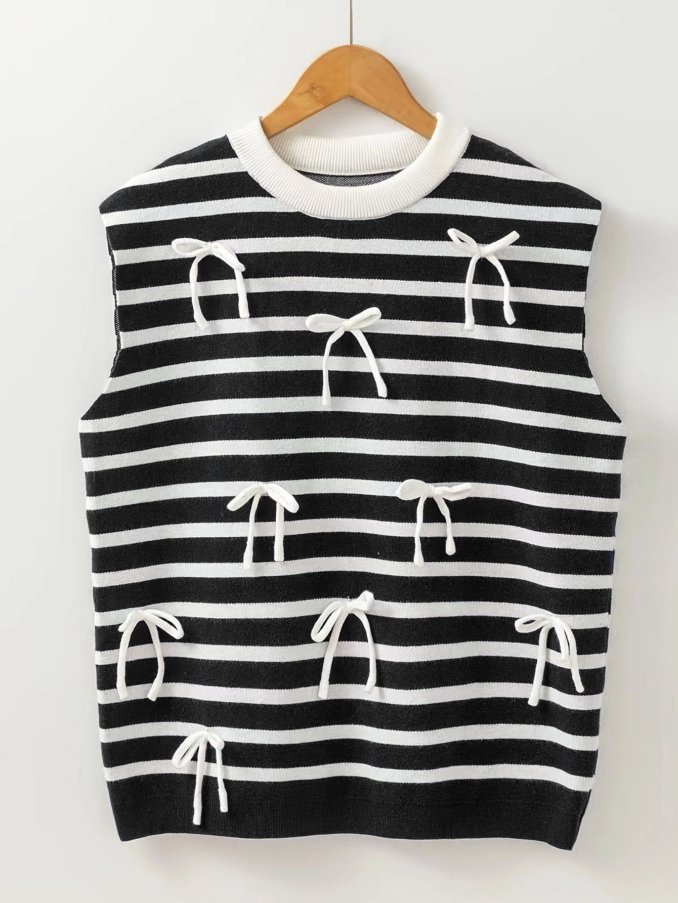 Gentle Wind Bows Short-Sleeved Knitted Shirt Lady Top HZ1208