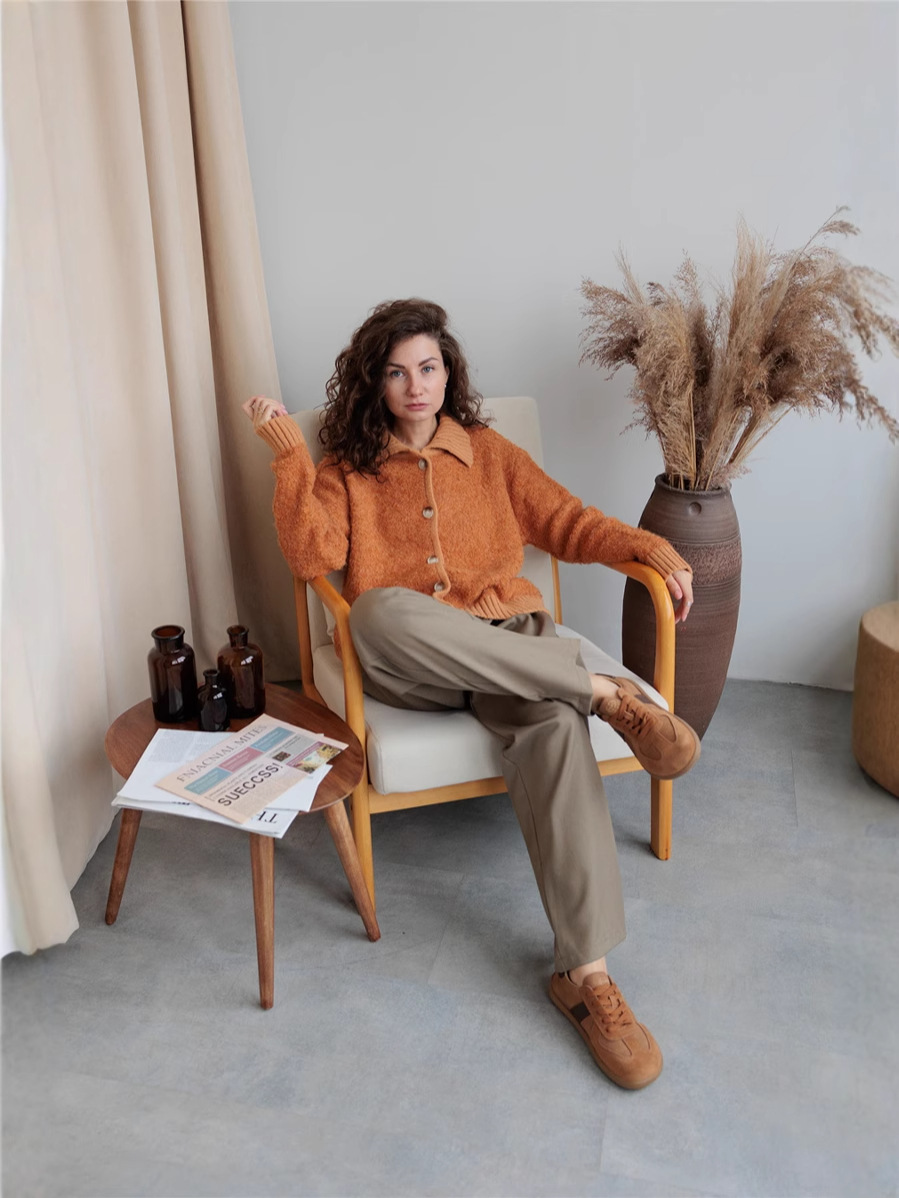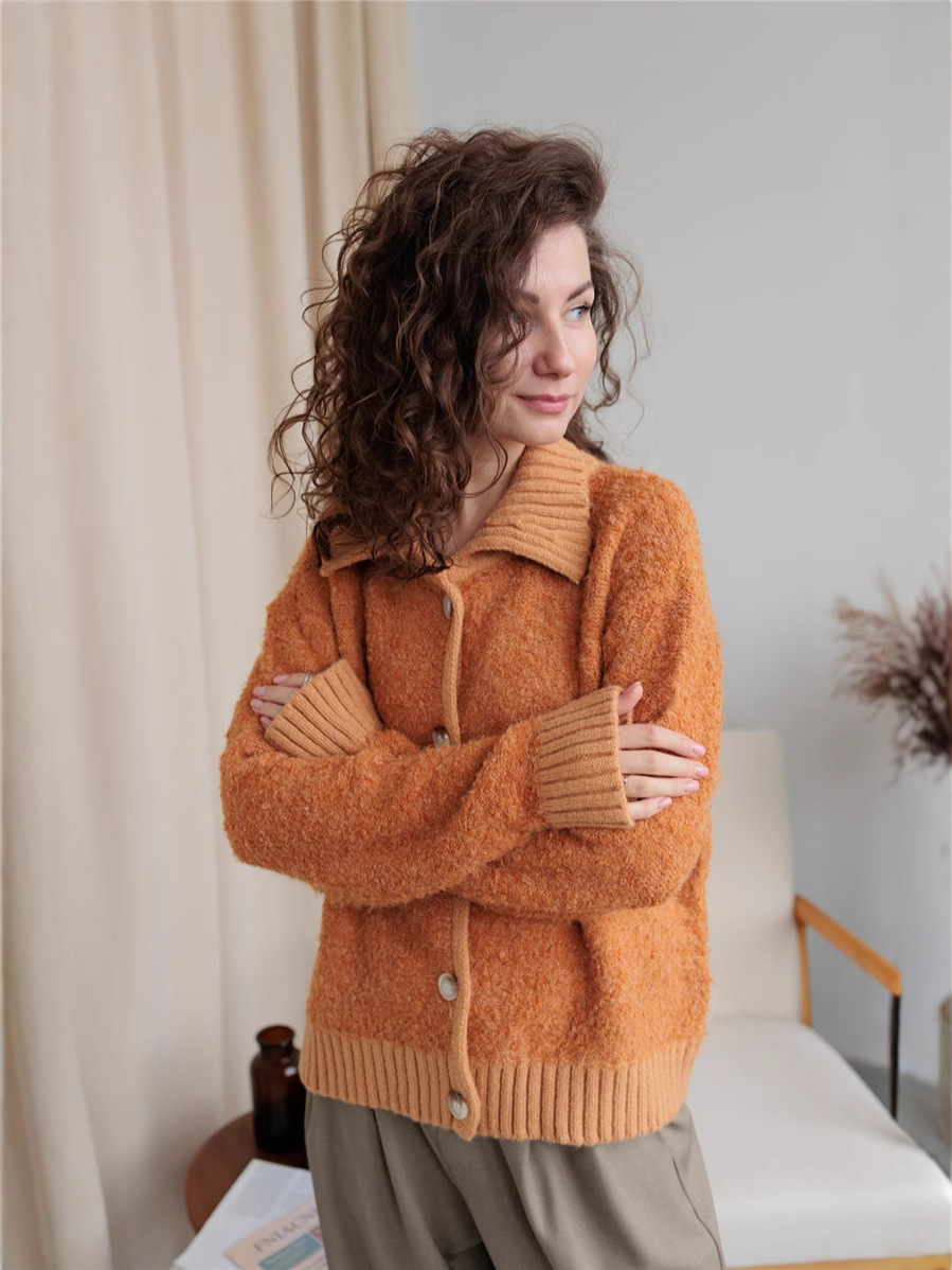 The New Languid Languid Knitted Sweater Jacket For The Women's Autumn/Winter 2025 Languid Collar Knitted Shirt HZ1208