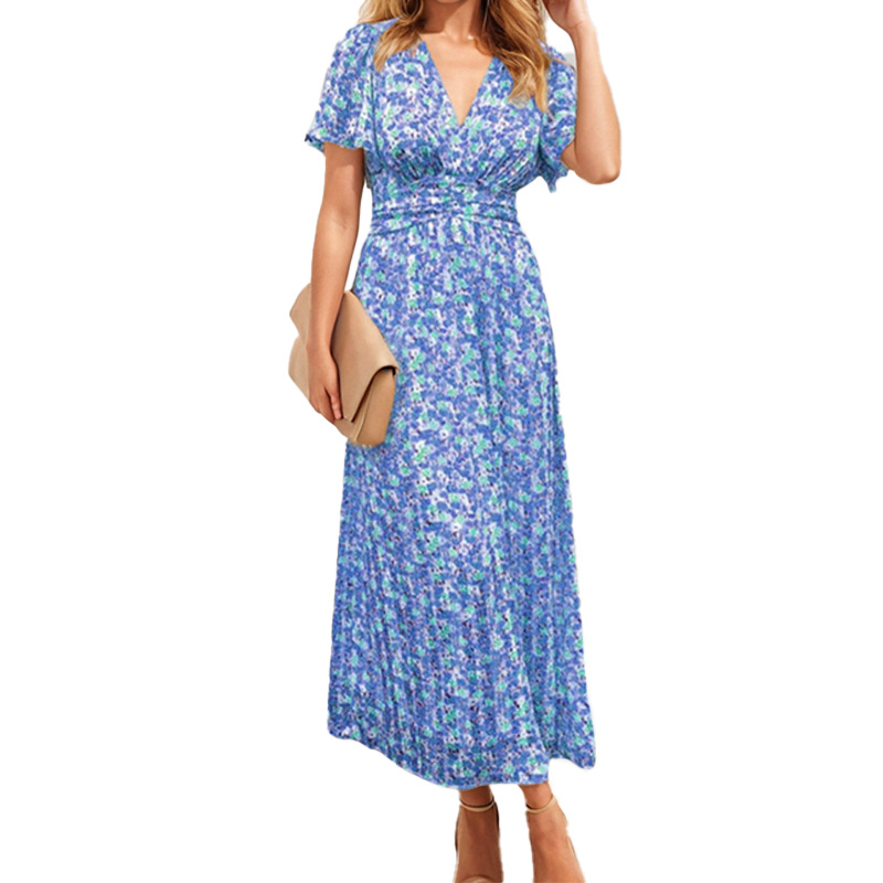 Women's Dress 2025 Dress New Temperament Pastoral Print V To Receive Waist Dress Dress Woman HZ1208