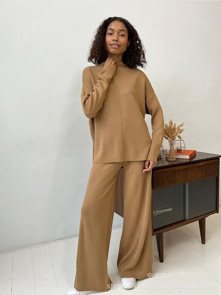 2025 Hot Sales Solid-Color Suit Women Irregular Open Fork Top + Wide Leg Pants Leisure Loose New HZ1208