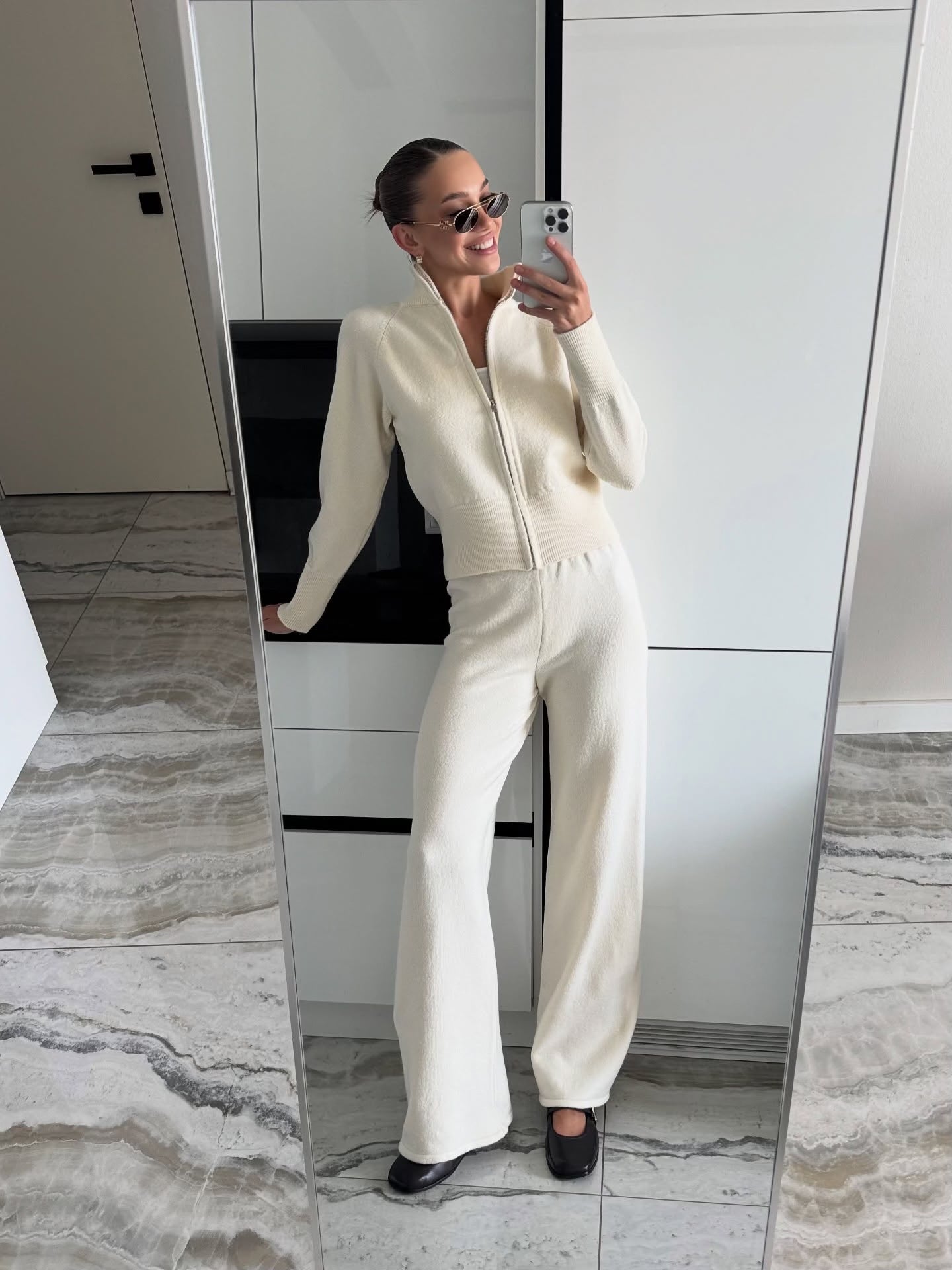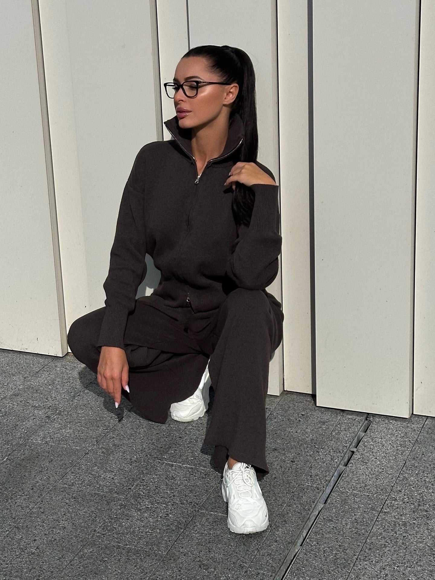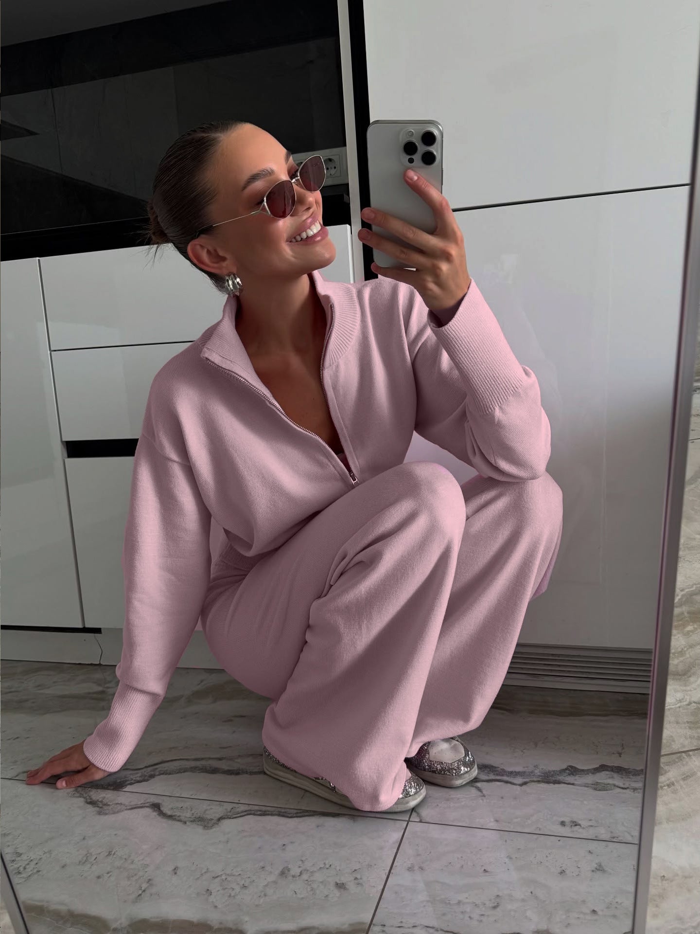 Autumn And Winter New Lazy Windy Open Shirt Sweater Set Women's Comfortable Top + Pants Knitted Two Sets HZ1208