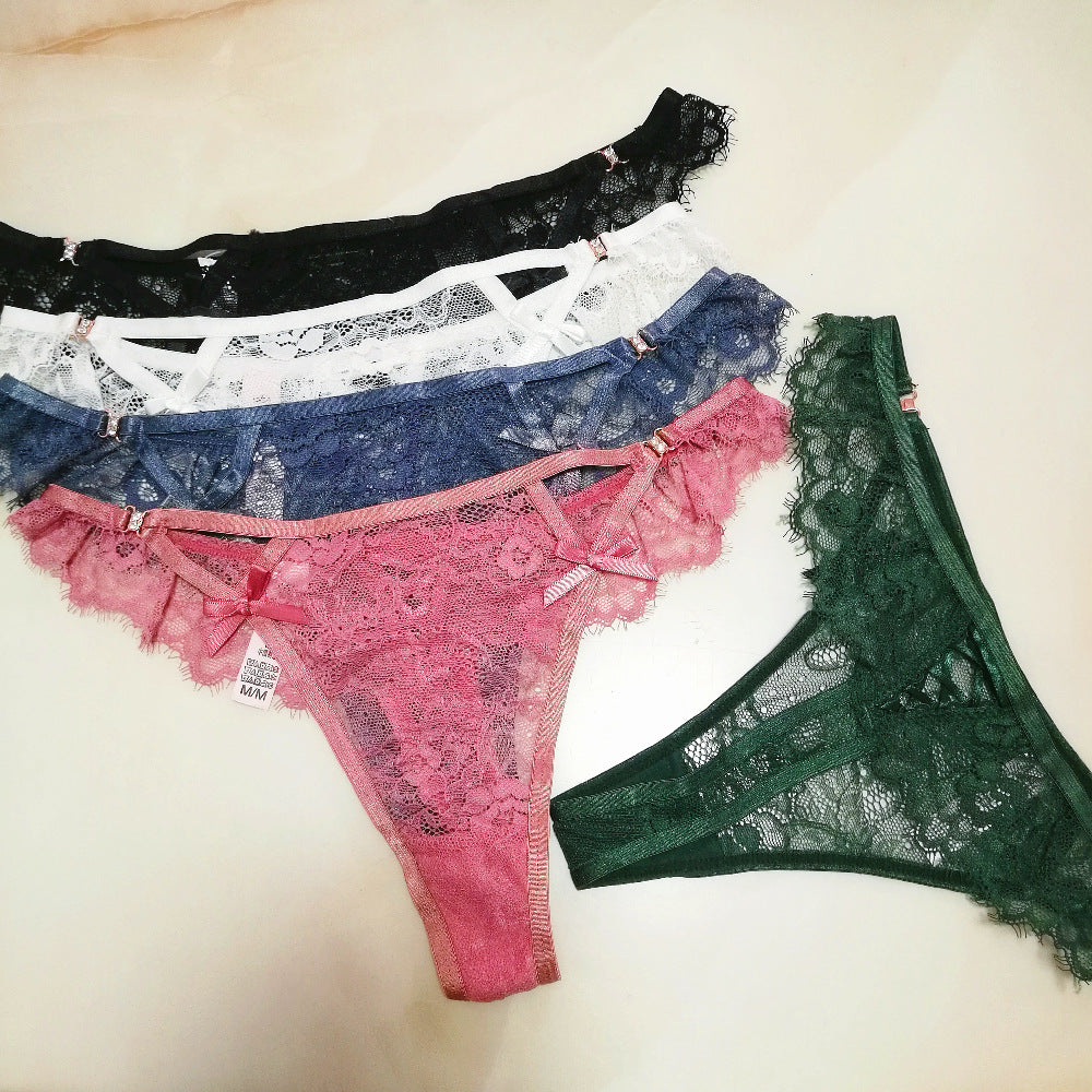 New Triangle Hollow Lace Side Thong Lady Water Drill Hanging Cotton Crotch Trousers Tpants HZ1208