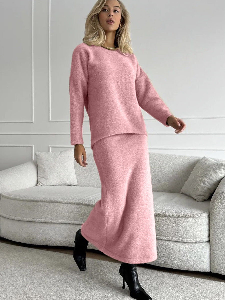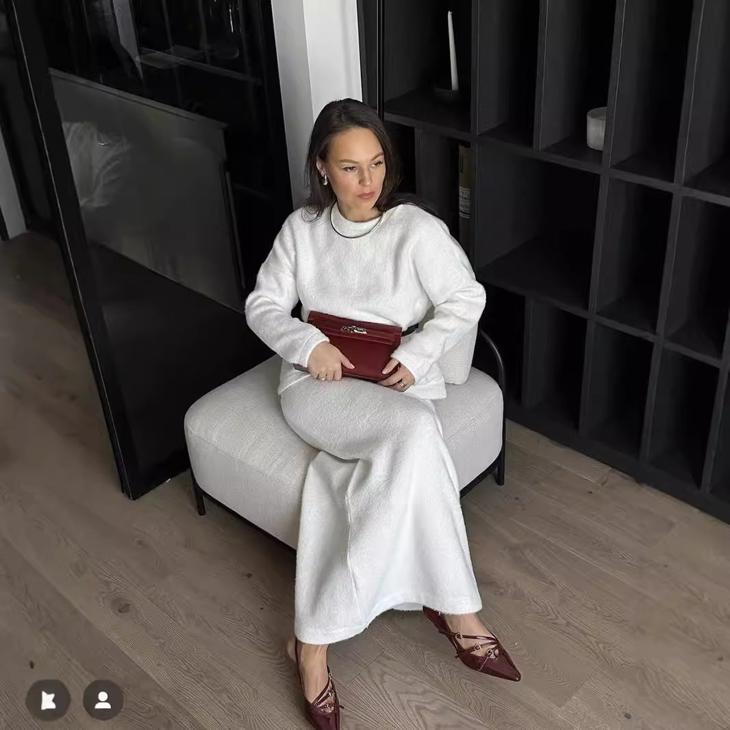 Autumn/Winter 2025 Elegant Soft Thicker Round Collar Sweater + Fishtail Skirt Two Sets Of Women's OL Wind Top + Skirt Set HZ1208