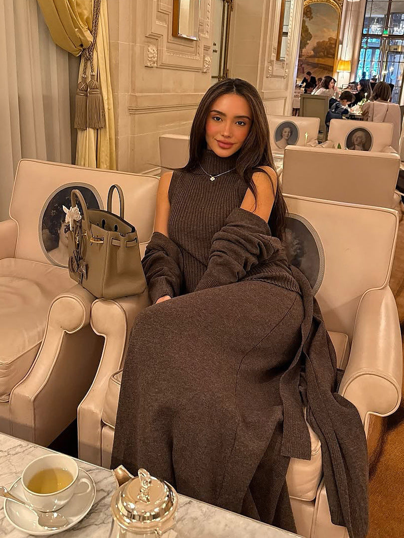 Fashion Knitted Cardigan + Long Skirt Suit Woman Body Simple Elegant Temperament Afternoon Tea Party HZ1208