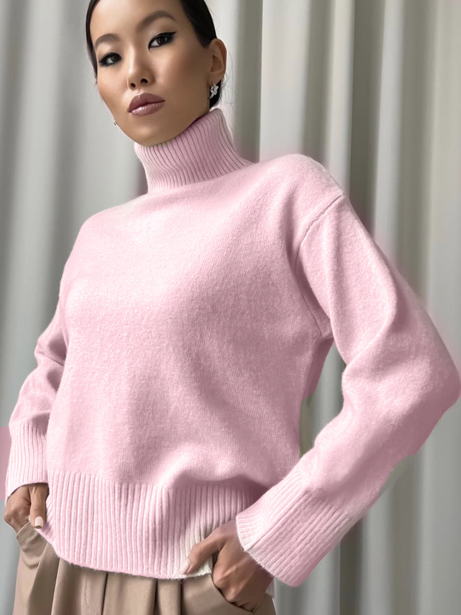 Autumn And Winter Pure Color Short High-Collar Sweater Women's Loose Leisure Knitting Shirt 2025 New Thicker Top HZ1208