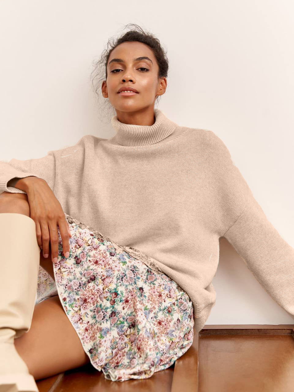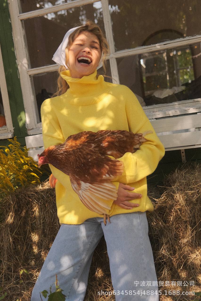 Autumn And Winter Pure Color Turtleneck Sweater Hot Selling Burst Comfortable Loose Basic Jacket Sweater Woman HZ1208