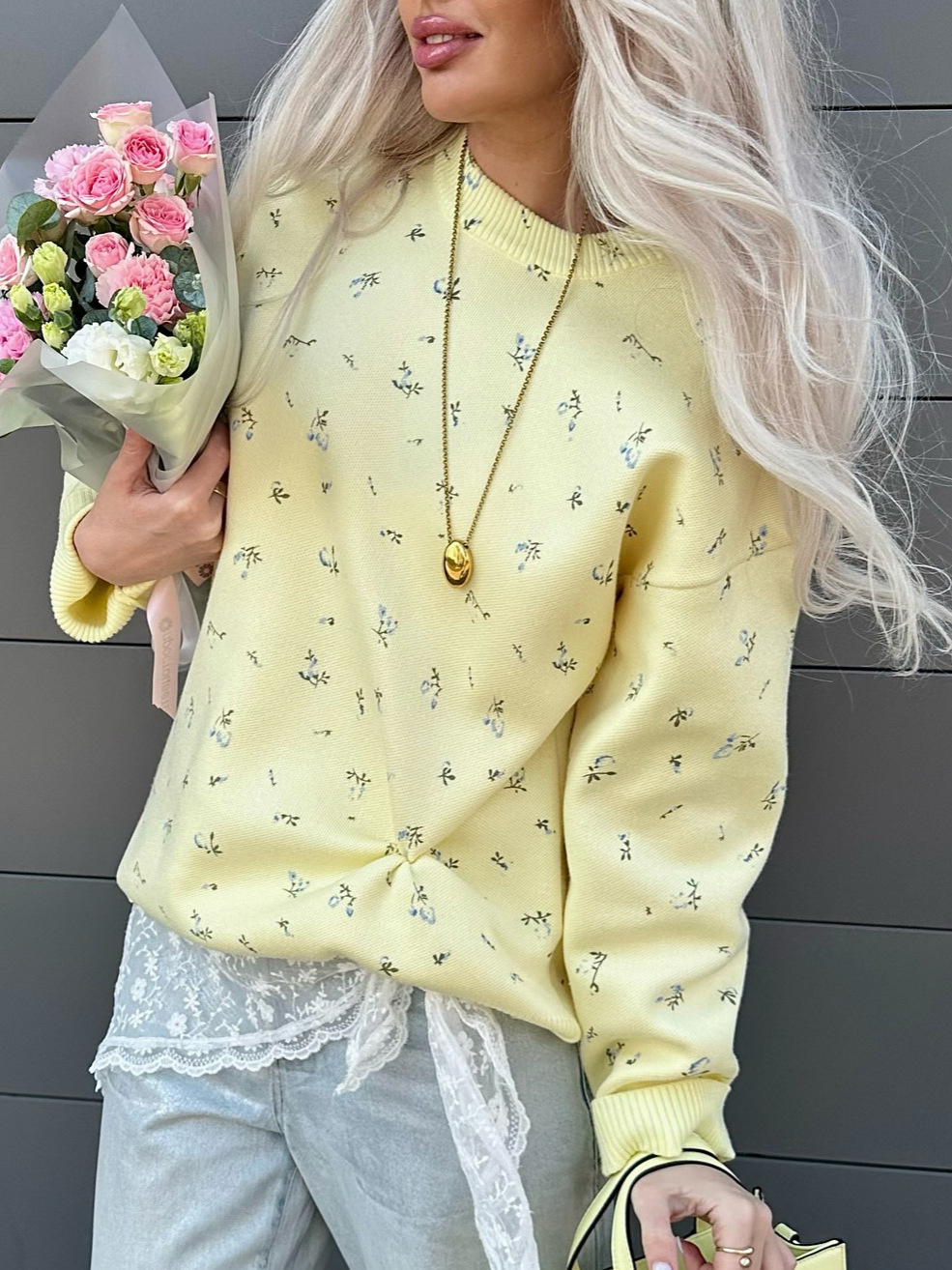Fashion Sense Of Long Knitted Flower Circle Collar Collar Sweater Loose Leisure Lazy New Woman HZ1208