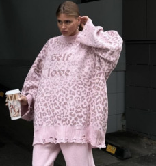 New Leopard Knitted Cardigan Sweater V Collar Design Elegant And Colorful Style Full Of Loose Female HZ1208