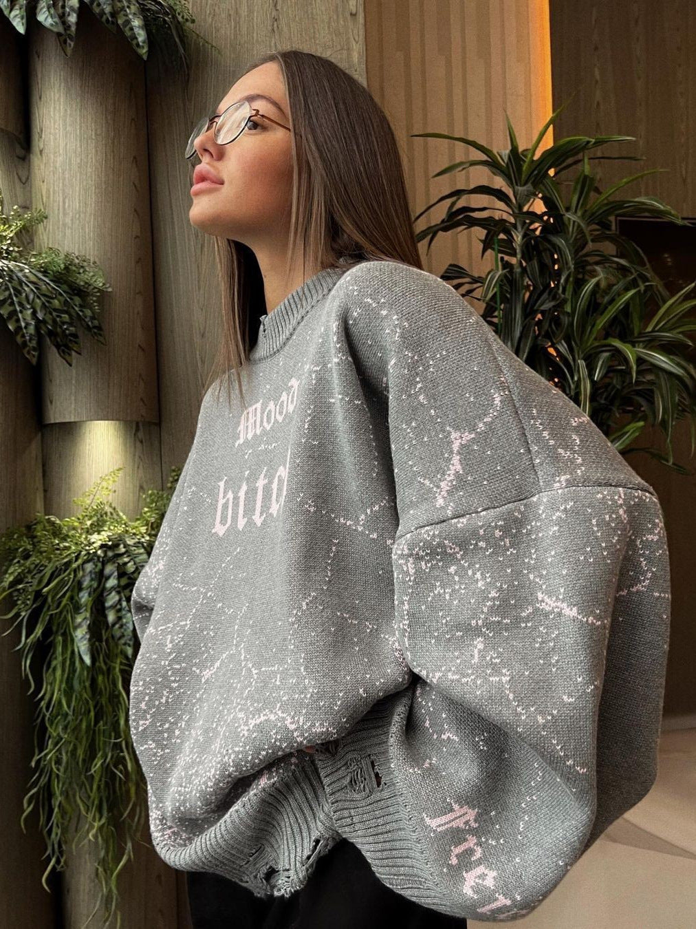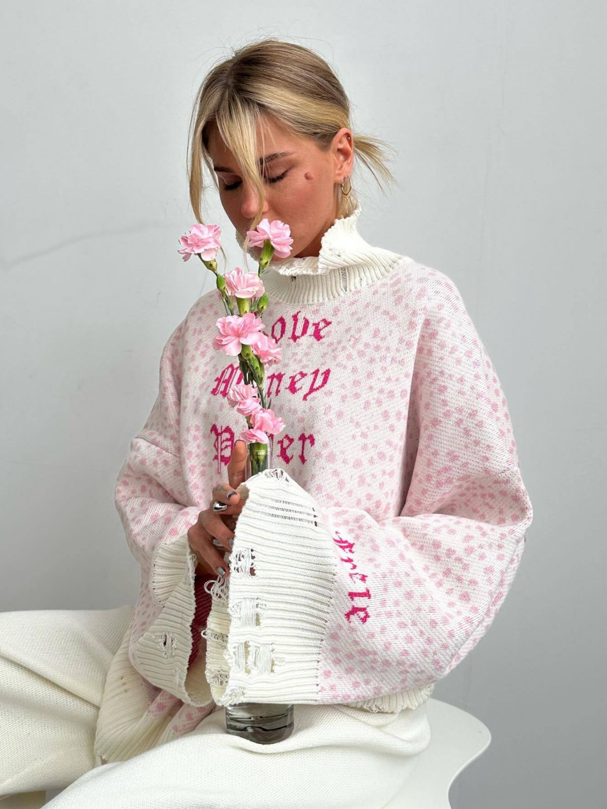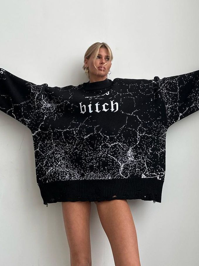 Loose Letter Embroidery Personality Tattered Wool Woven Long-Sleeved Sweater Women's Autumn And Winter Letter Embroidery HZ1208