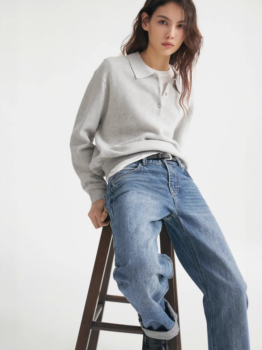 2025 Autumn And Winter Polo Collar Solid Color Sweater Women's Casual Knitted Shirt Hot Sale HZ1208