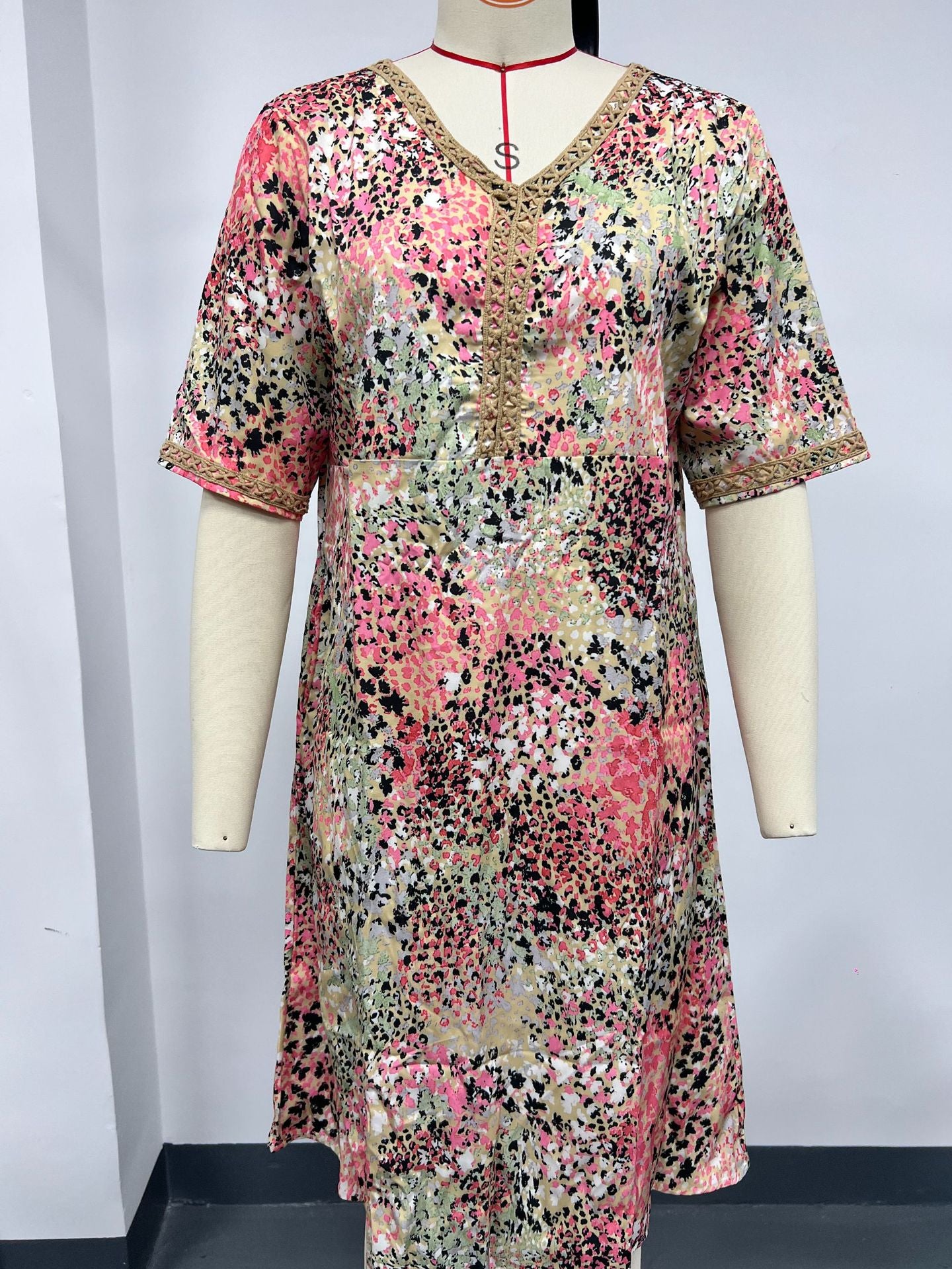 2025 Fashion New Printed Lace V-Neck Short-Sleeved Dress HZ1208