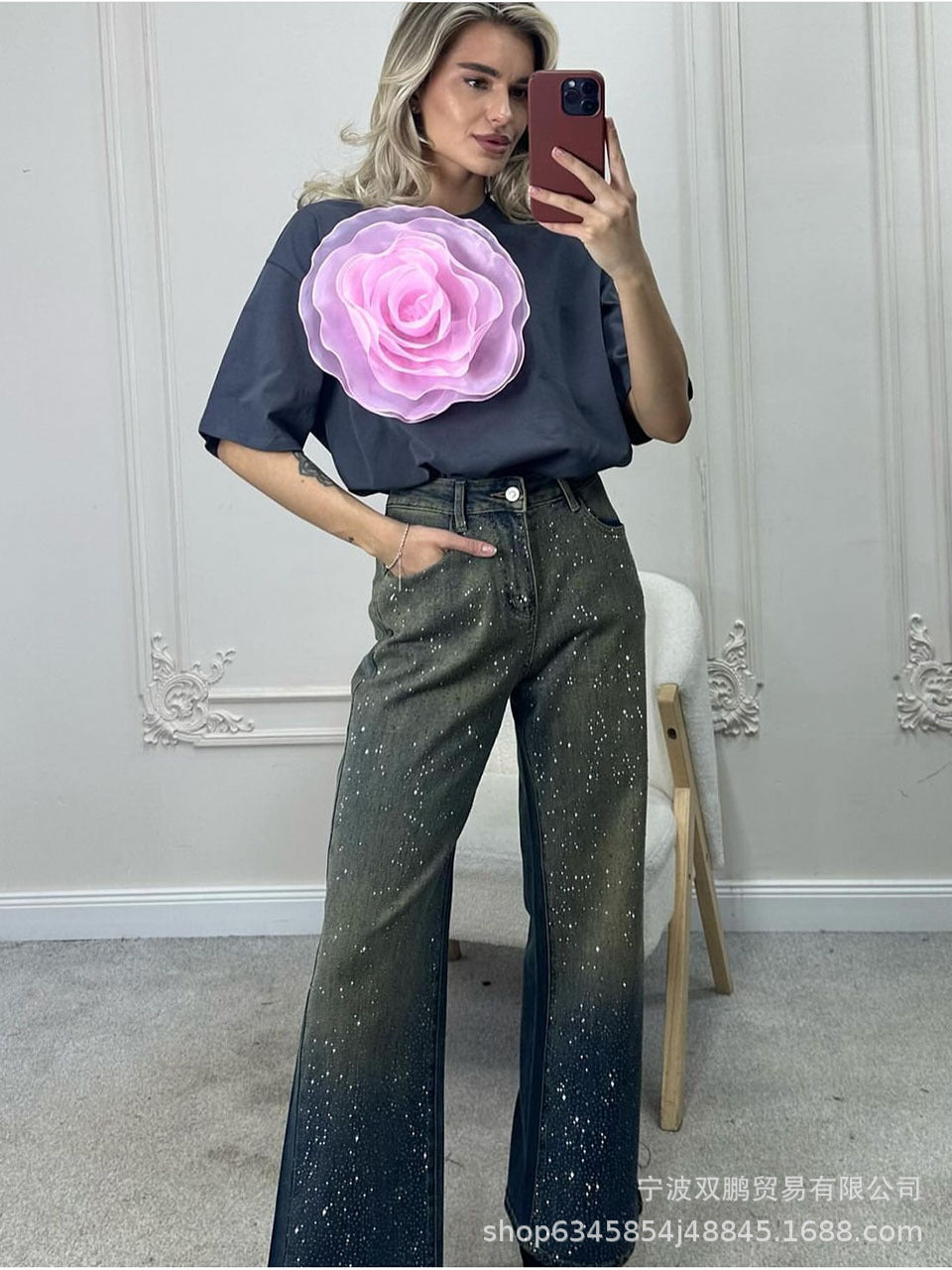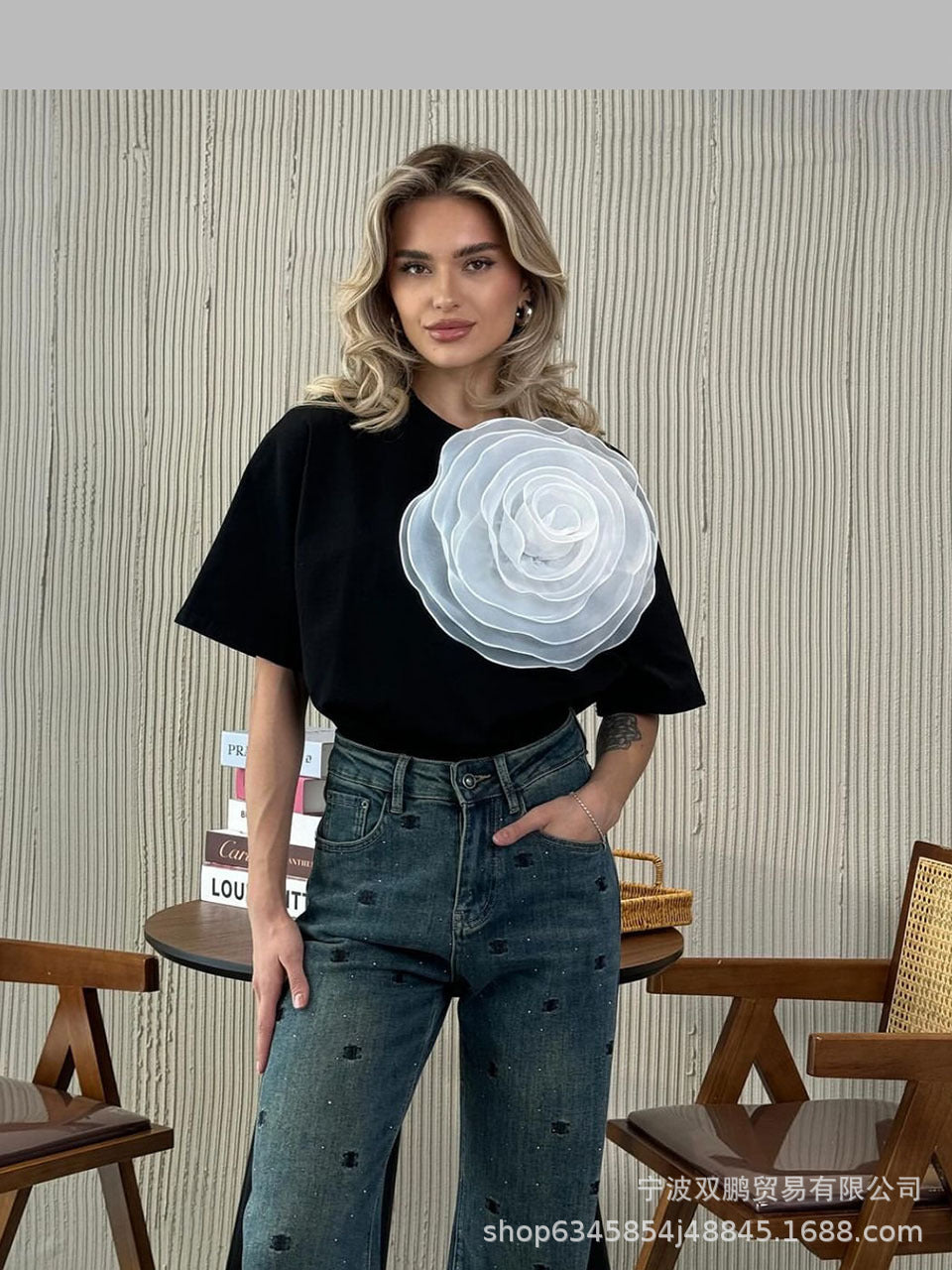 2025 Hot Sale Ins Wind Loose T-Shirt Women's Three-Dimensional Mesh Yarn Tea Pure Cotton Short-Sleeved Top HZ1208