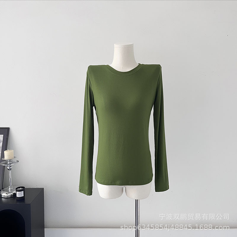 2025 New Model Knitted Long-Sleeved Women Hot To Sell The Basic Solid Color Bottom T-Shirt HZ1208