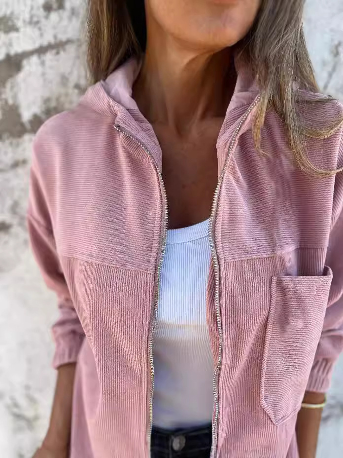 2025 Solid-Color Jacket Women's Simple Wind Wick Hooded Coat Women's Pocket Splicing HZ1208