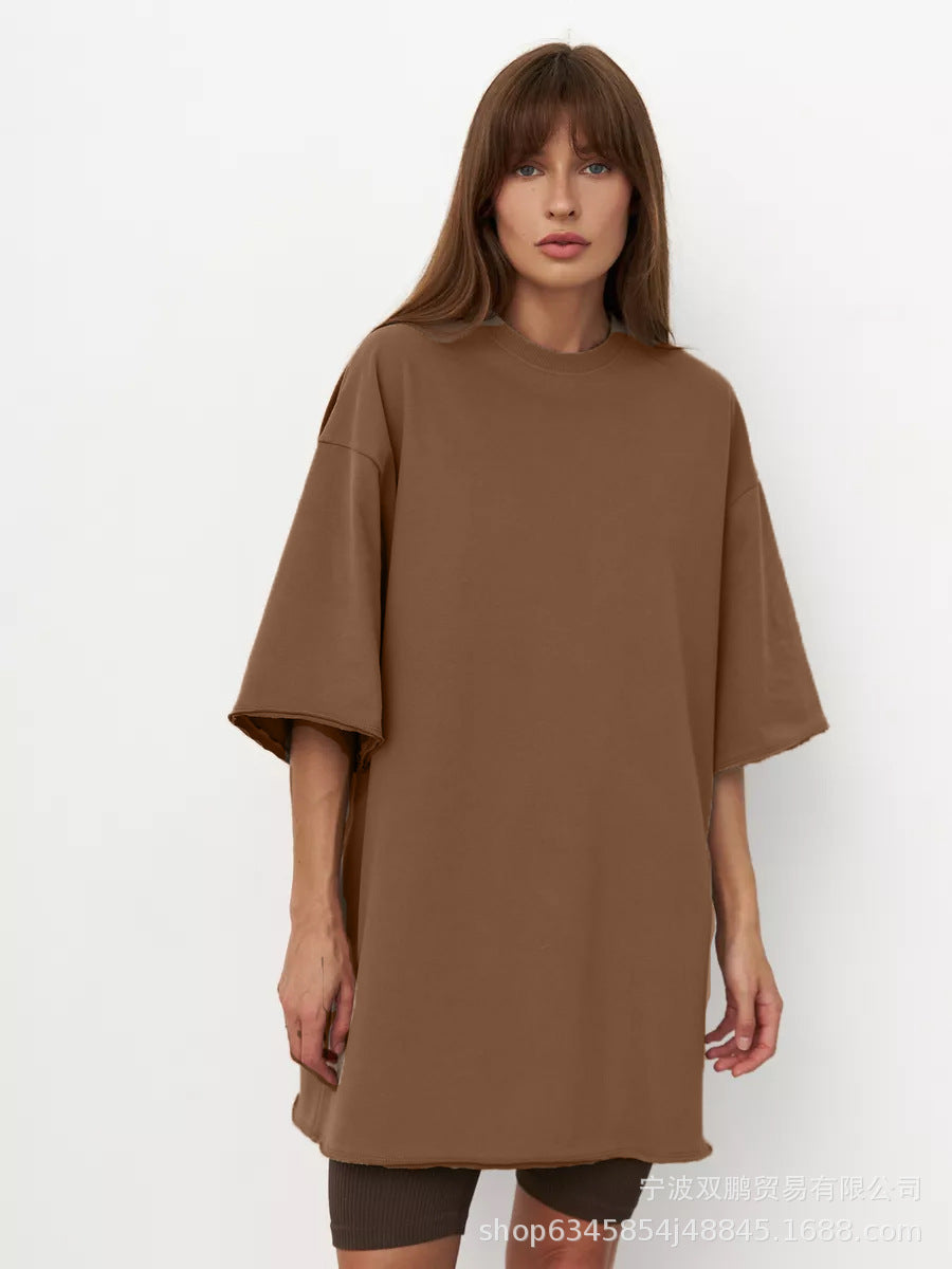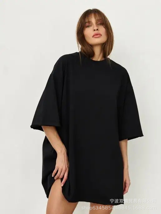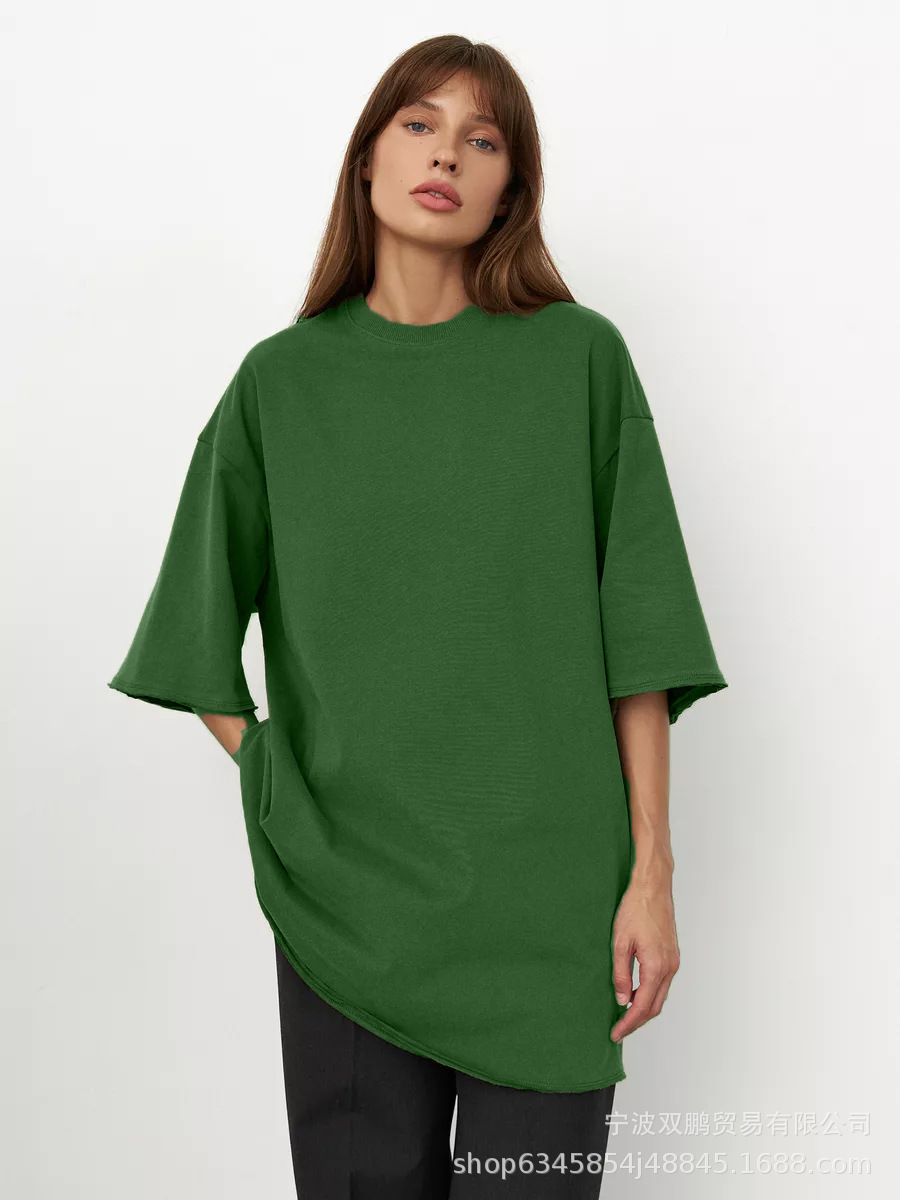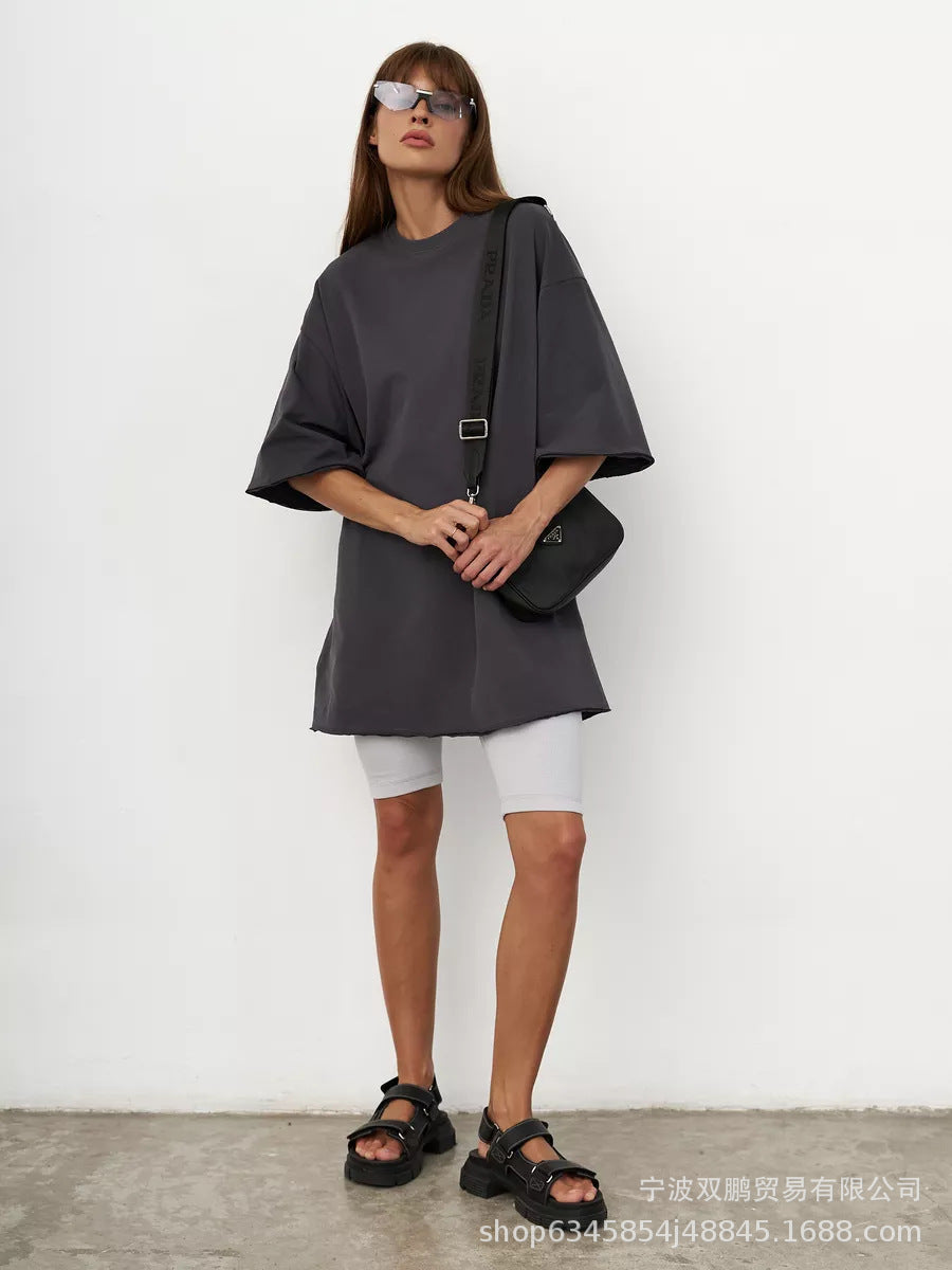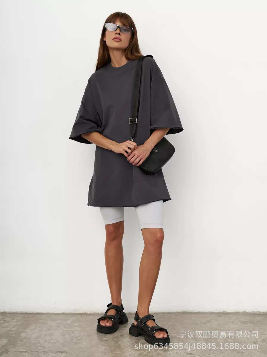 2025 Spring Summer New 260G Cotton T-Shirt Hot Pure Color Short-Sleeved Women Loose Large Version 240003 HZ1208