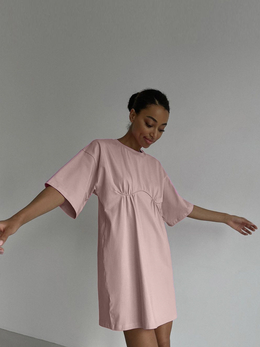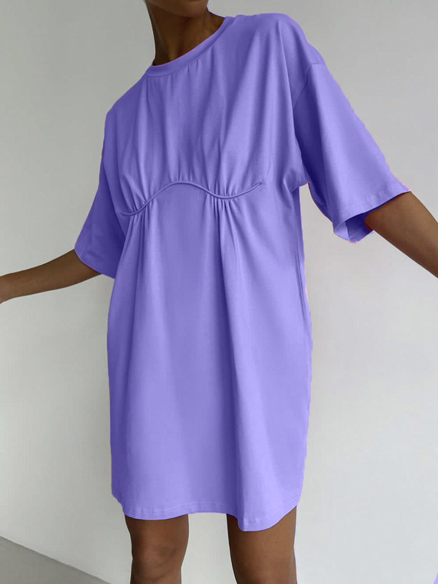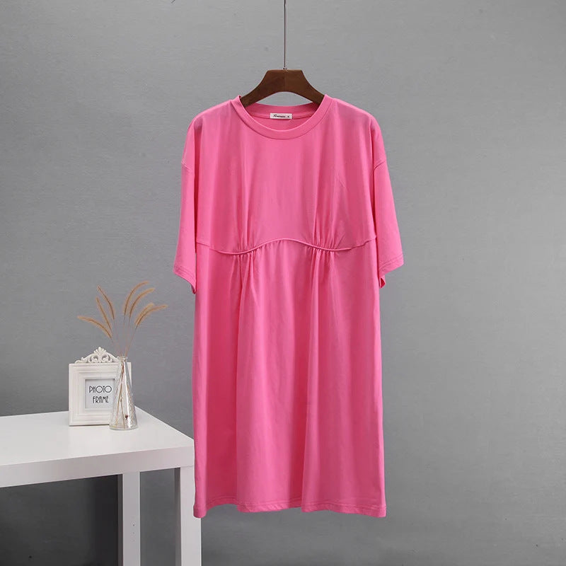 2025 Summer New Cotton Dress Women's Casual Loose Round-Neck T-Neck Round-Neck A-Shaped Dress Women's Dress HZ1208