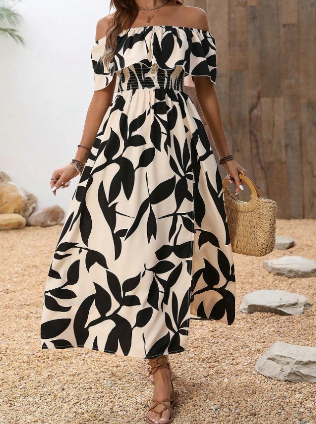 2025 Summer New Sexy Body-Print Shoulder Dress HZ1208