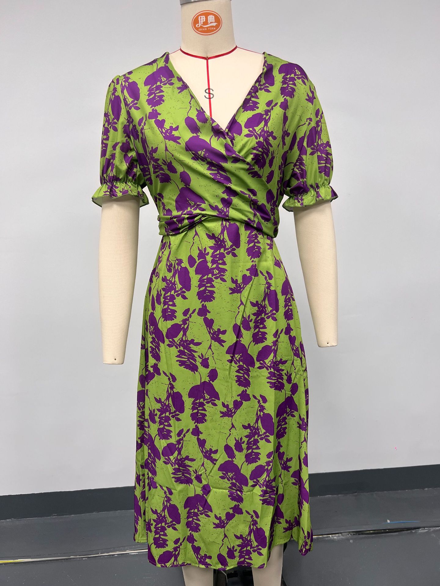 2025 Summer Women's Fashion Folding Print Dress Elegant Body V Collar Short Sleeve Dress HZ1208