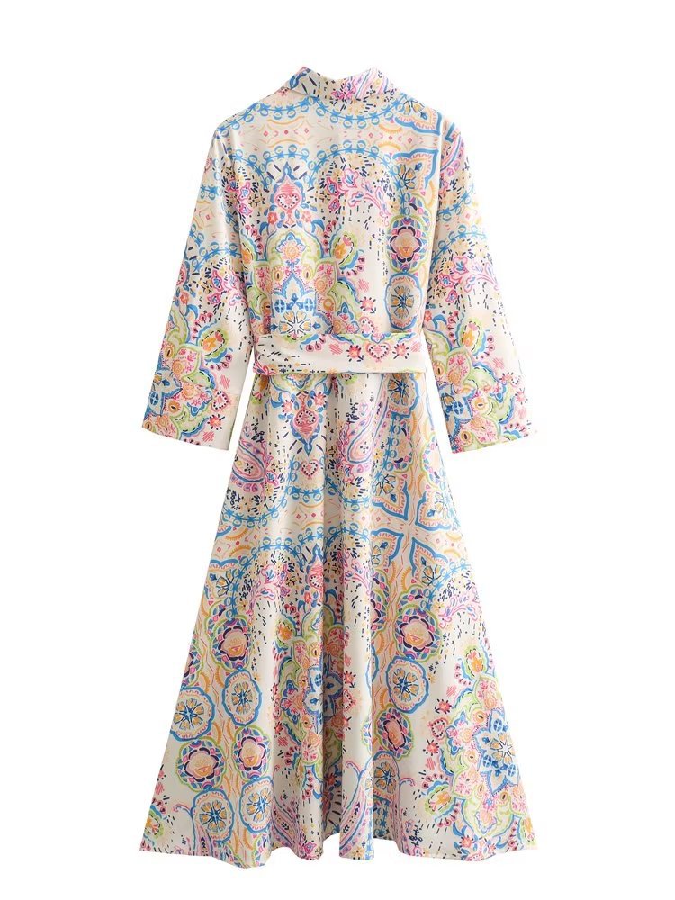 2025 Women's Long Sleeve Printed Shirt Dress 2007 HZ1208