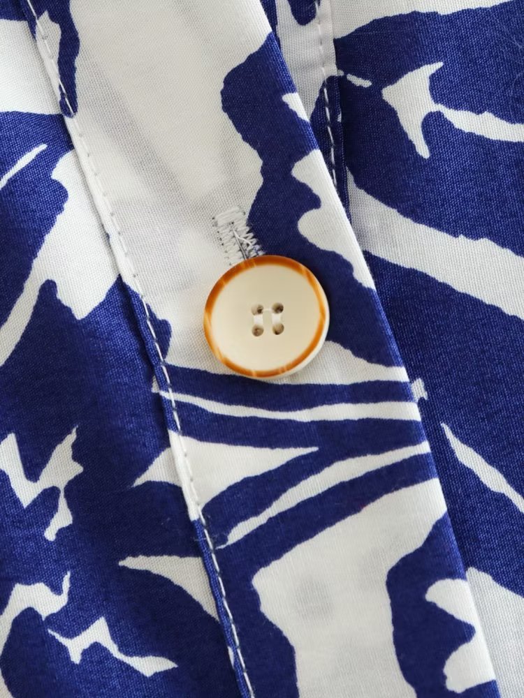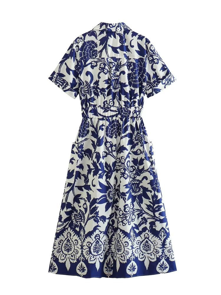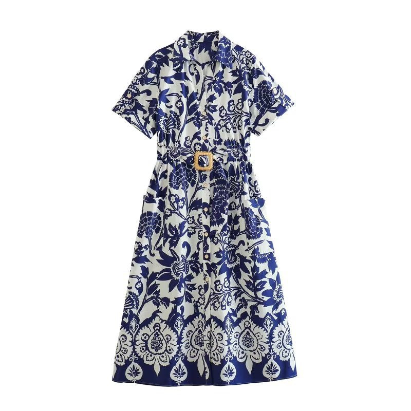 2025 Women's New Belt Dress With A Fan-Print Short-Sleeved Dress 9359 HZ1208