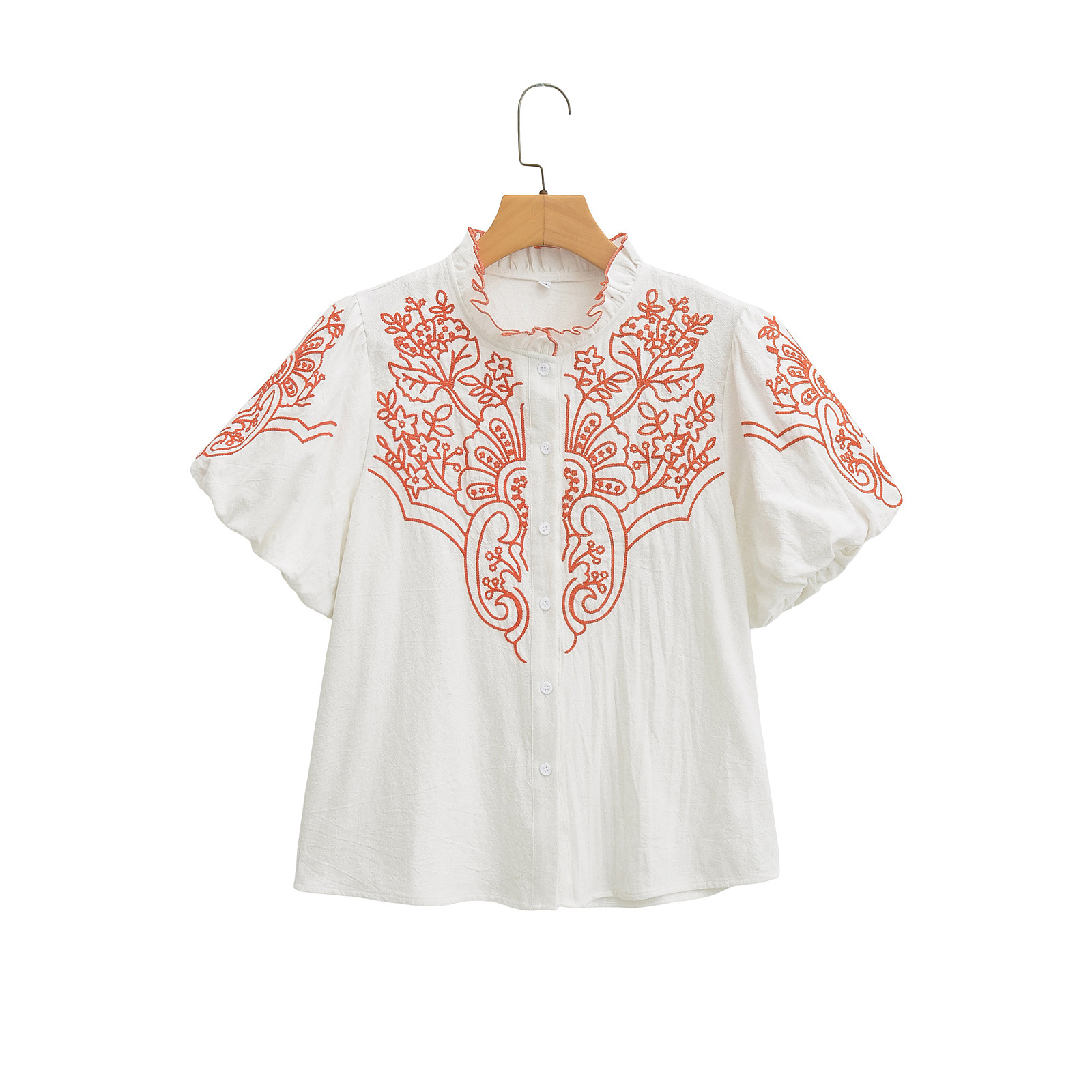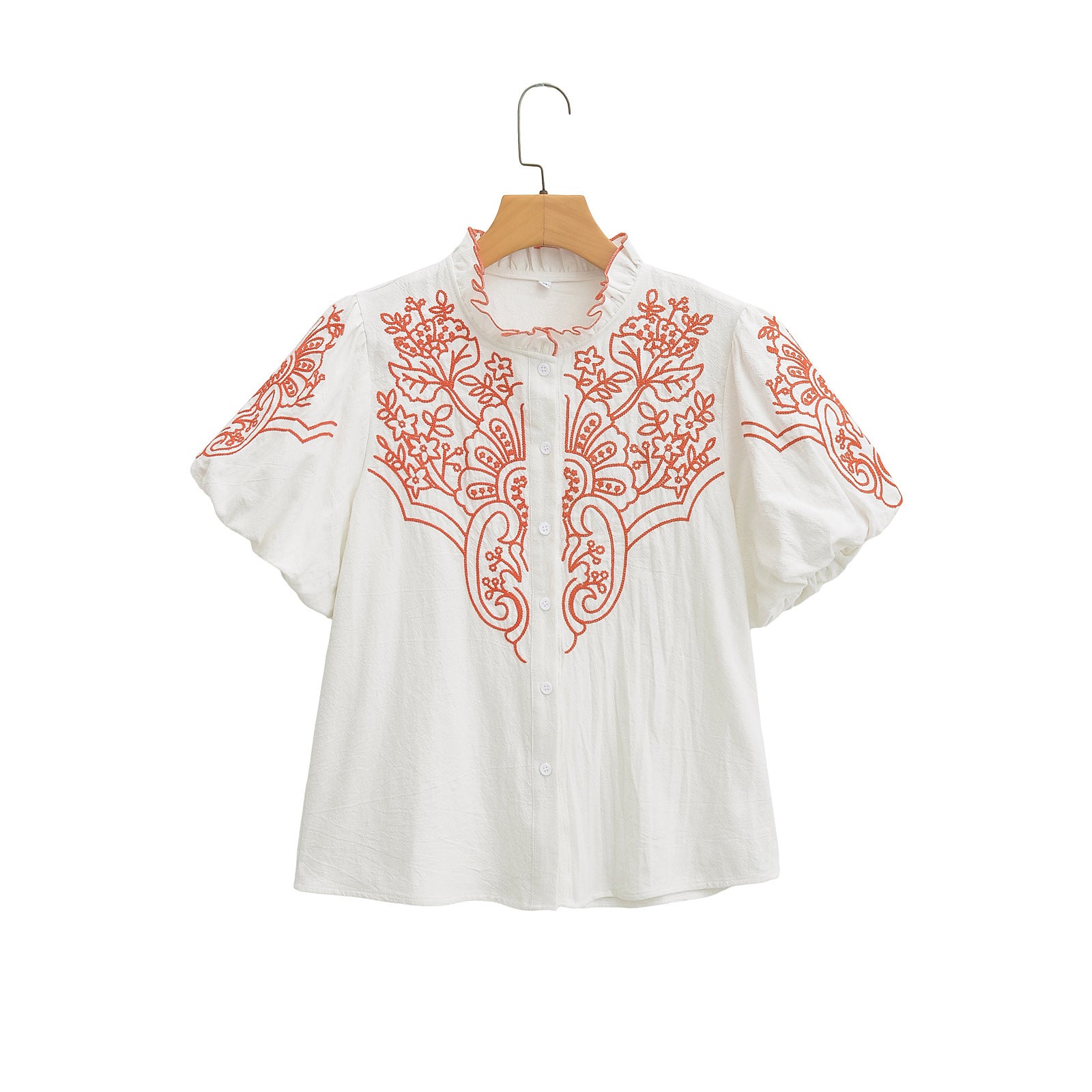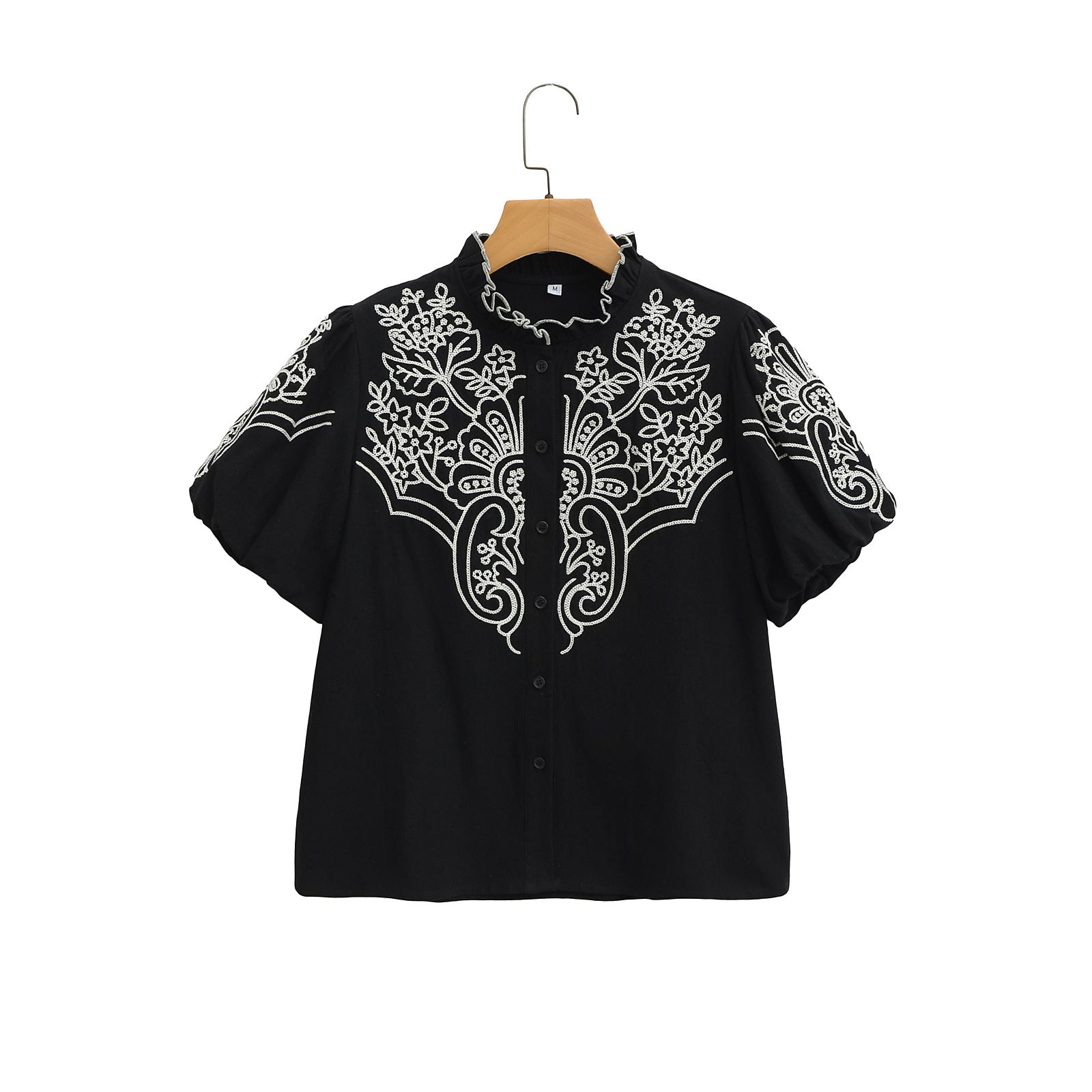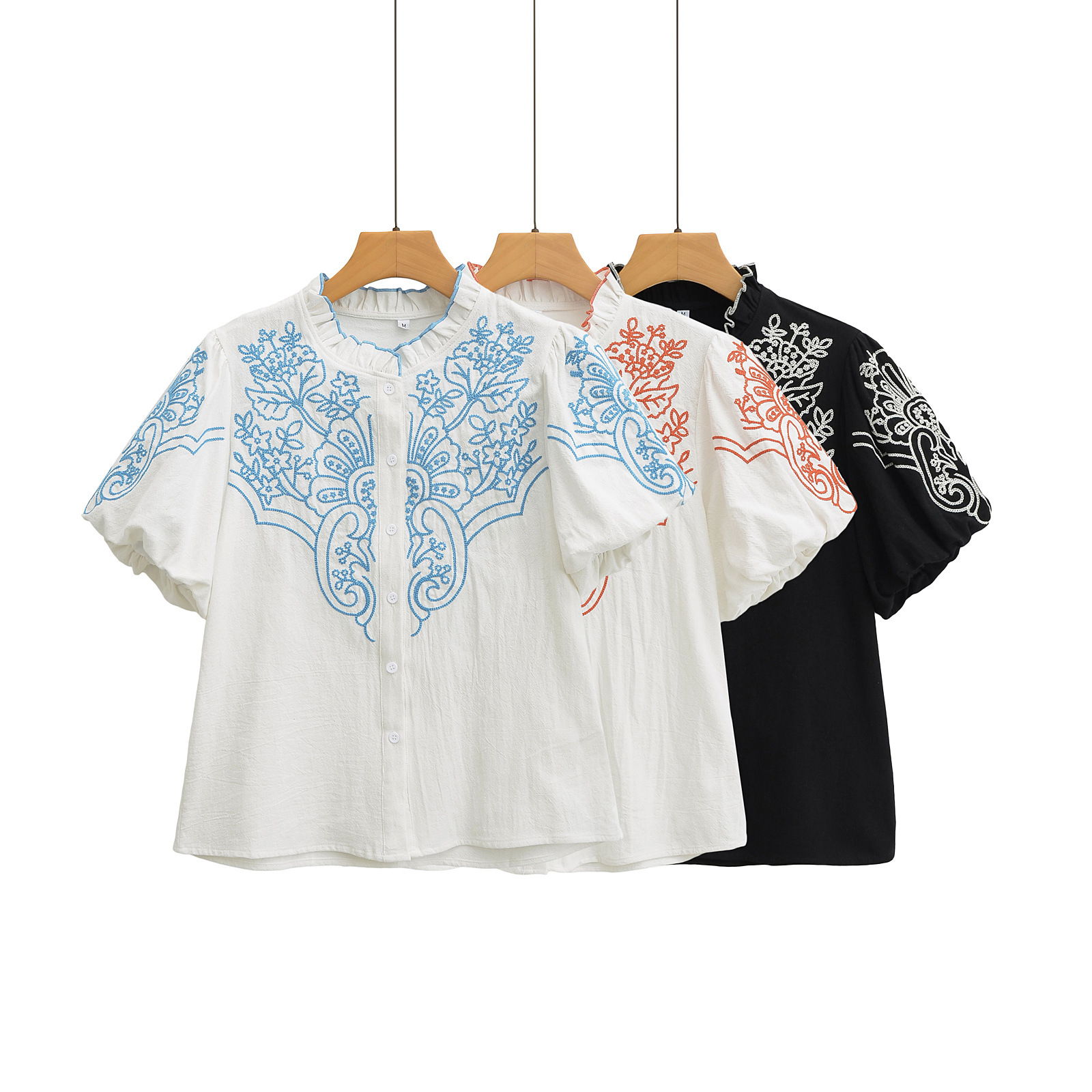 2025 Women's New Bubble Sleeve Embroidered Short-Sleeved Shirt 2595 HZ1208