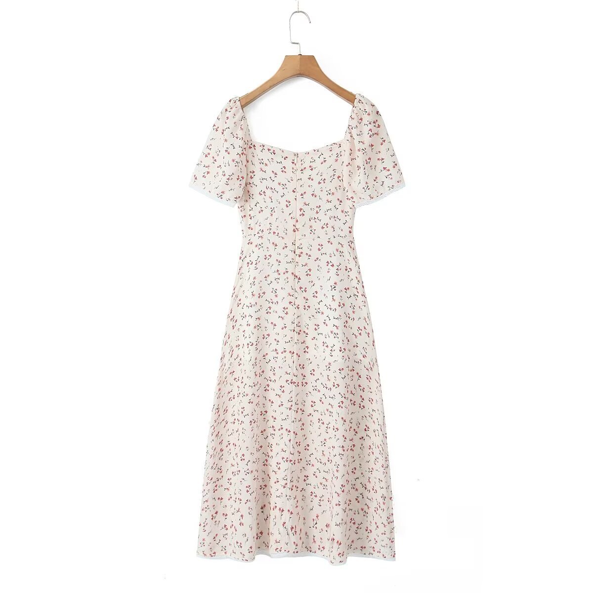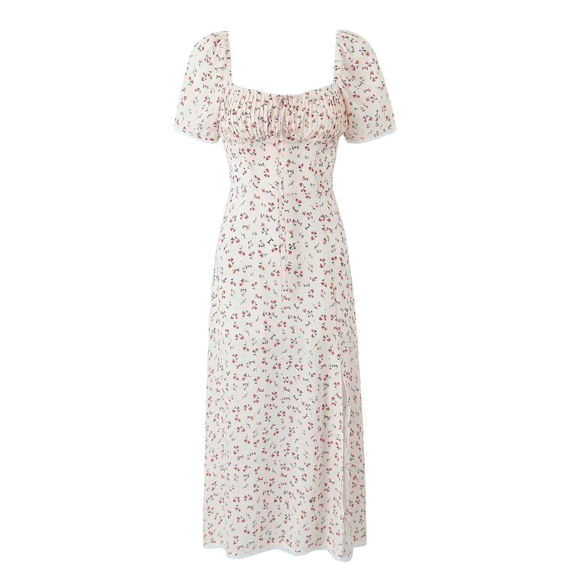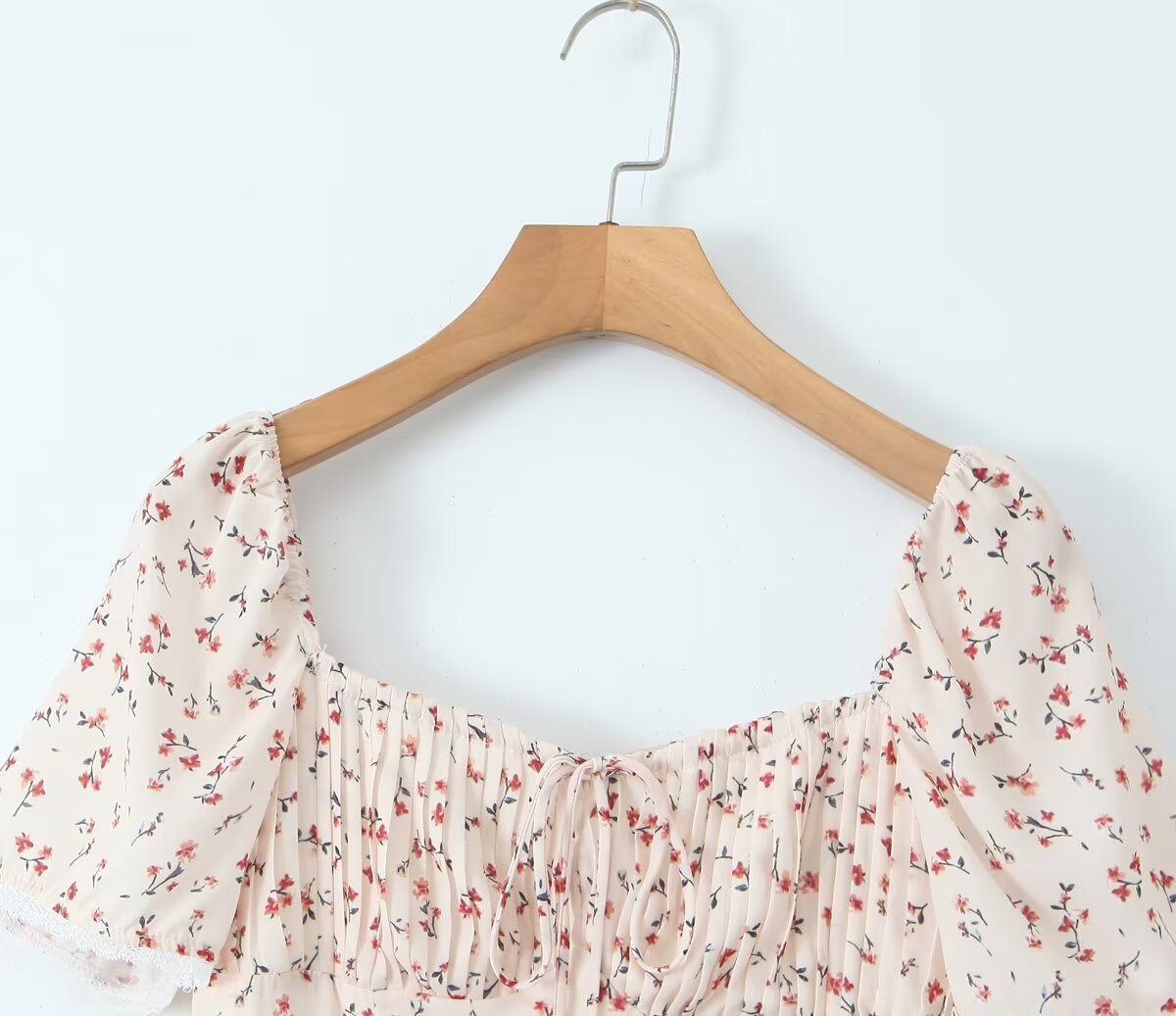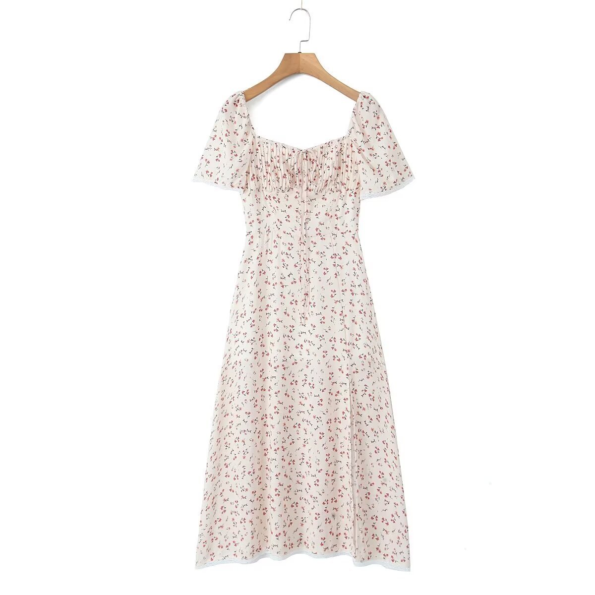 2025 Women's New Printed Rope Cramps To Close The Waist Short-Sleeved Dress 9342 HZ1208