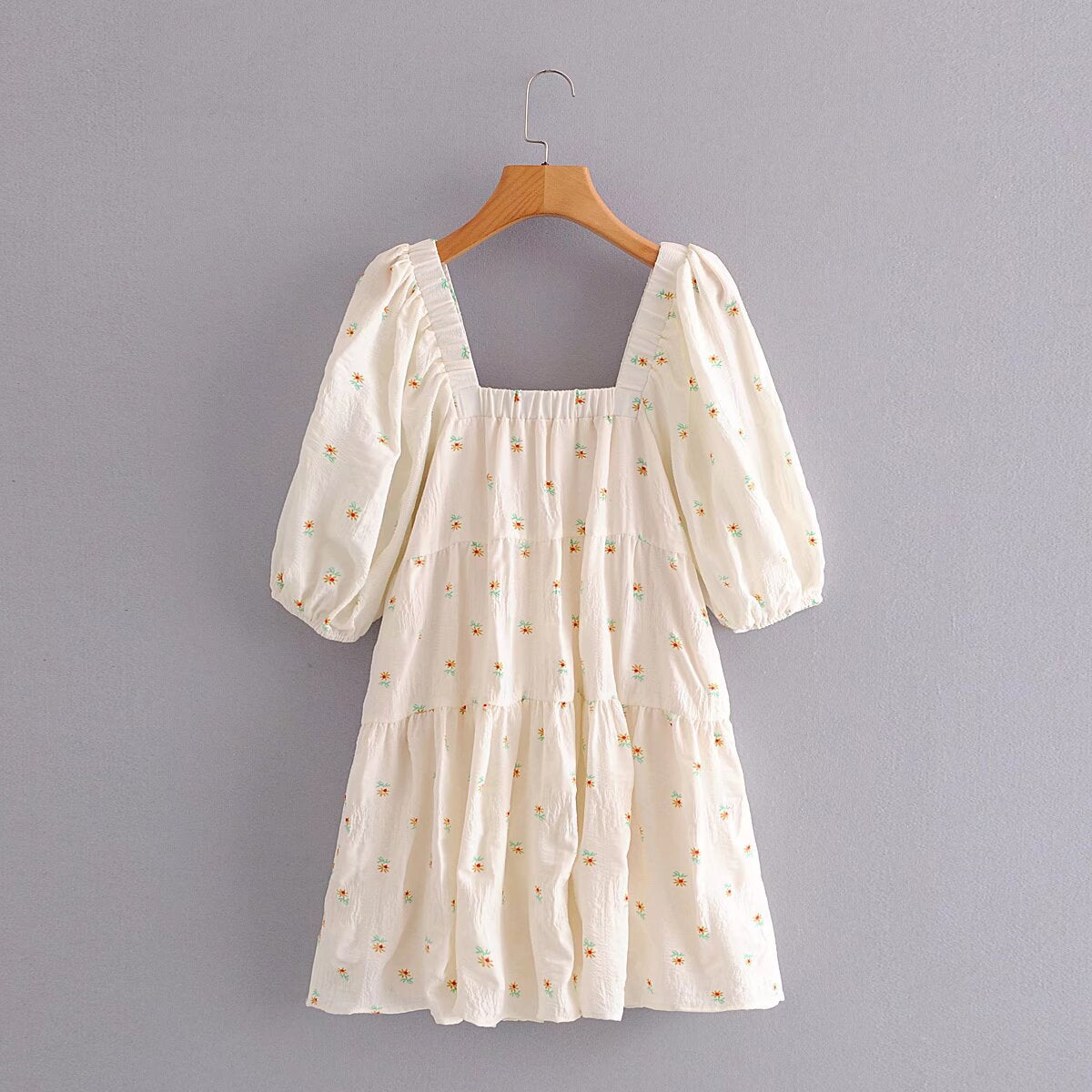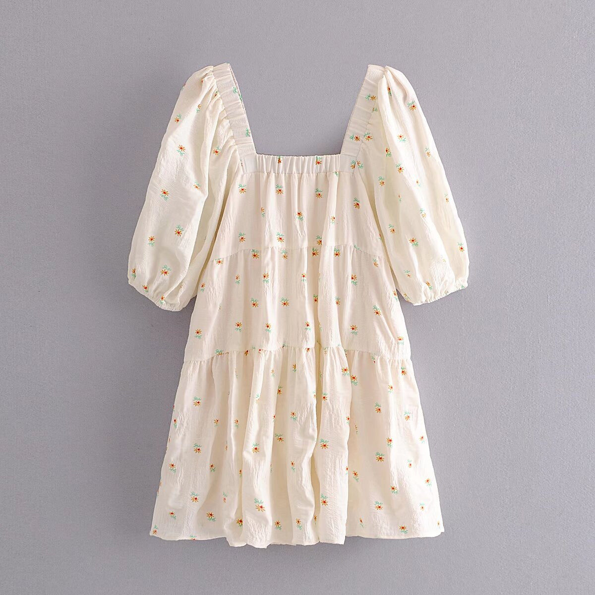 2025 Women's New Square Collar Flower Print Short Sleeve Long Dress 9848 HZ1208
