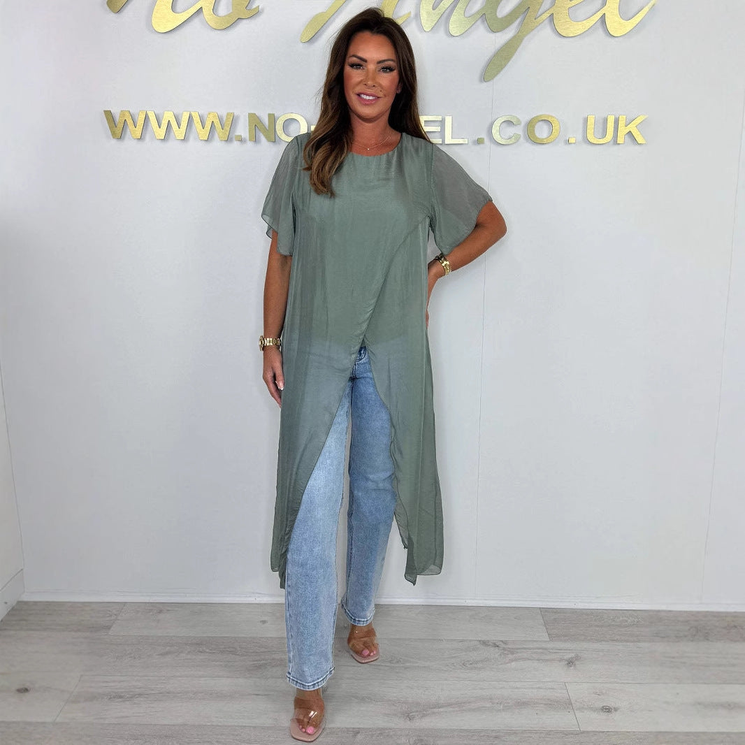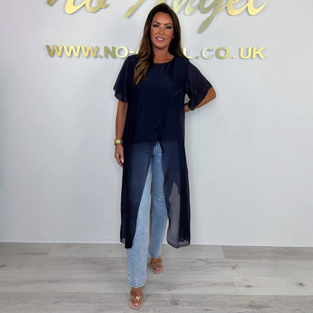 2025 Women's Spring Summer New Short-Sleeved Cross Long Top HZ1208