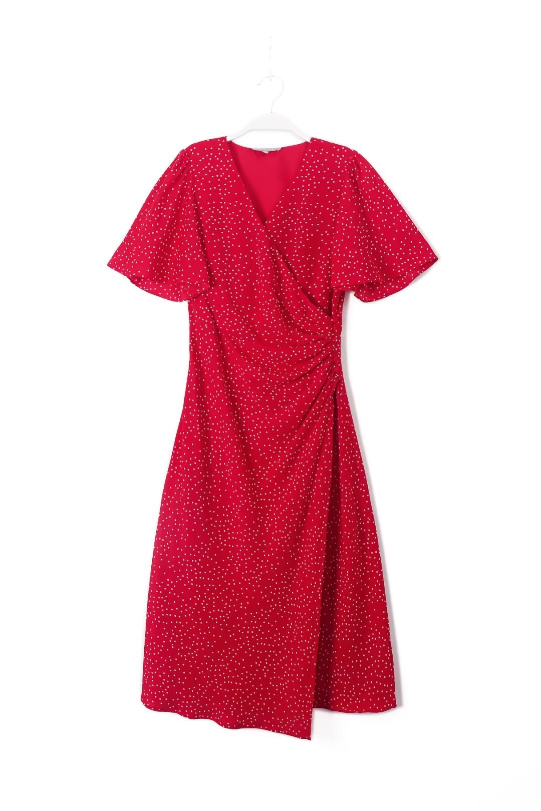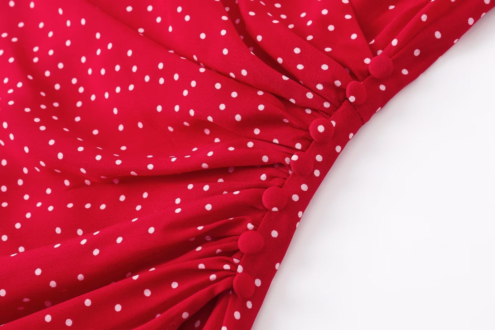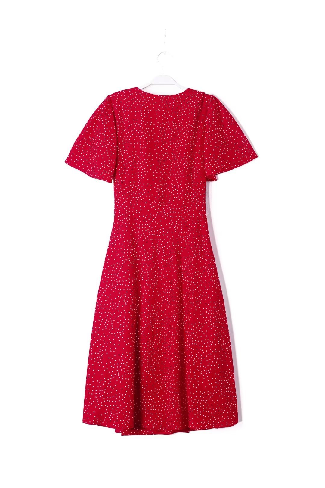 2025 Women's V-Neck Red-Red Floral Short-Sleeved Dress 23075 HZ1208